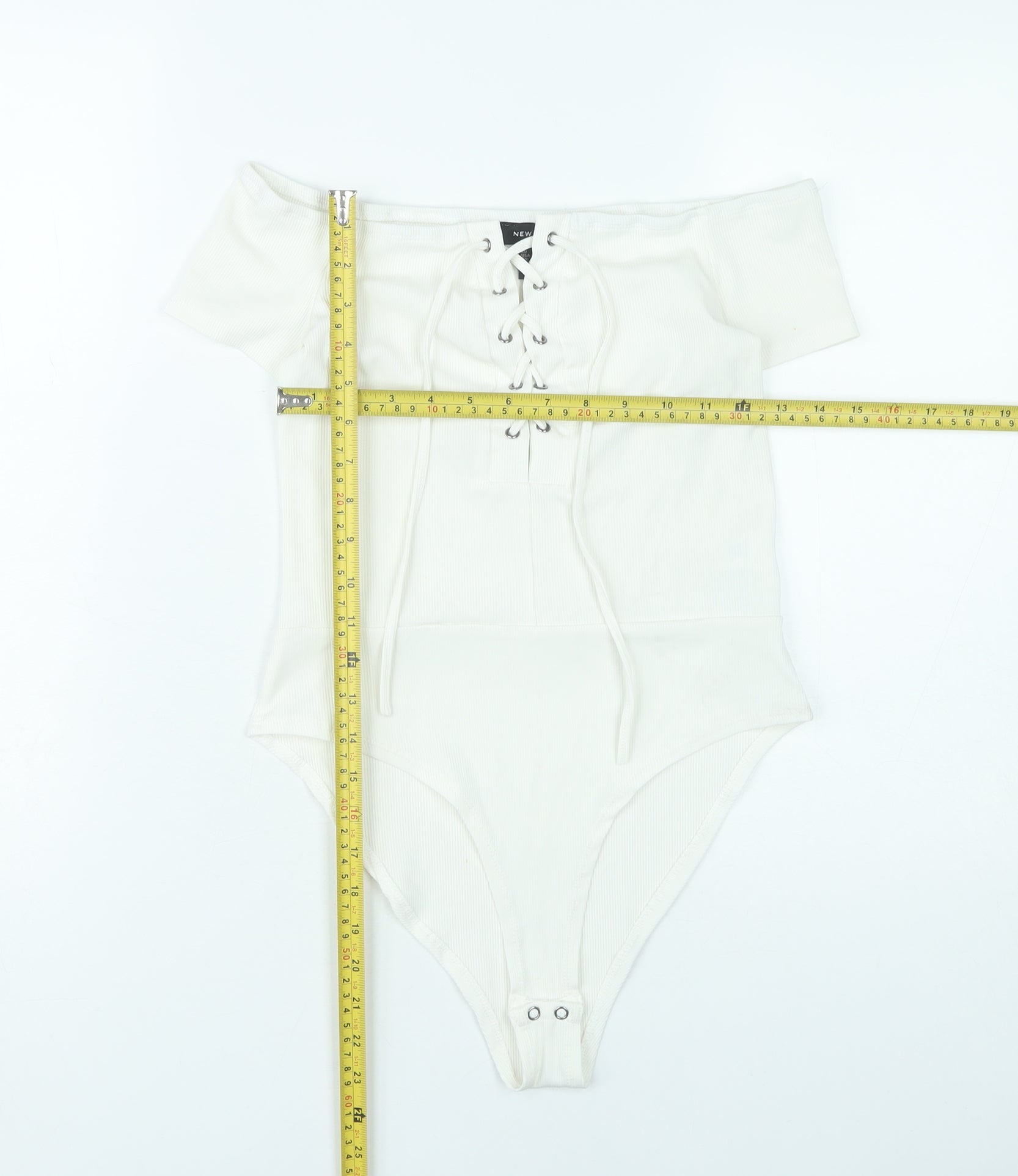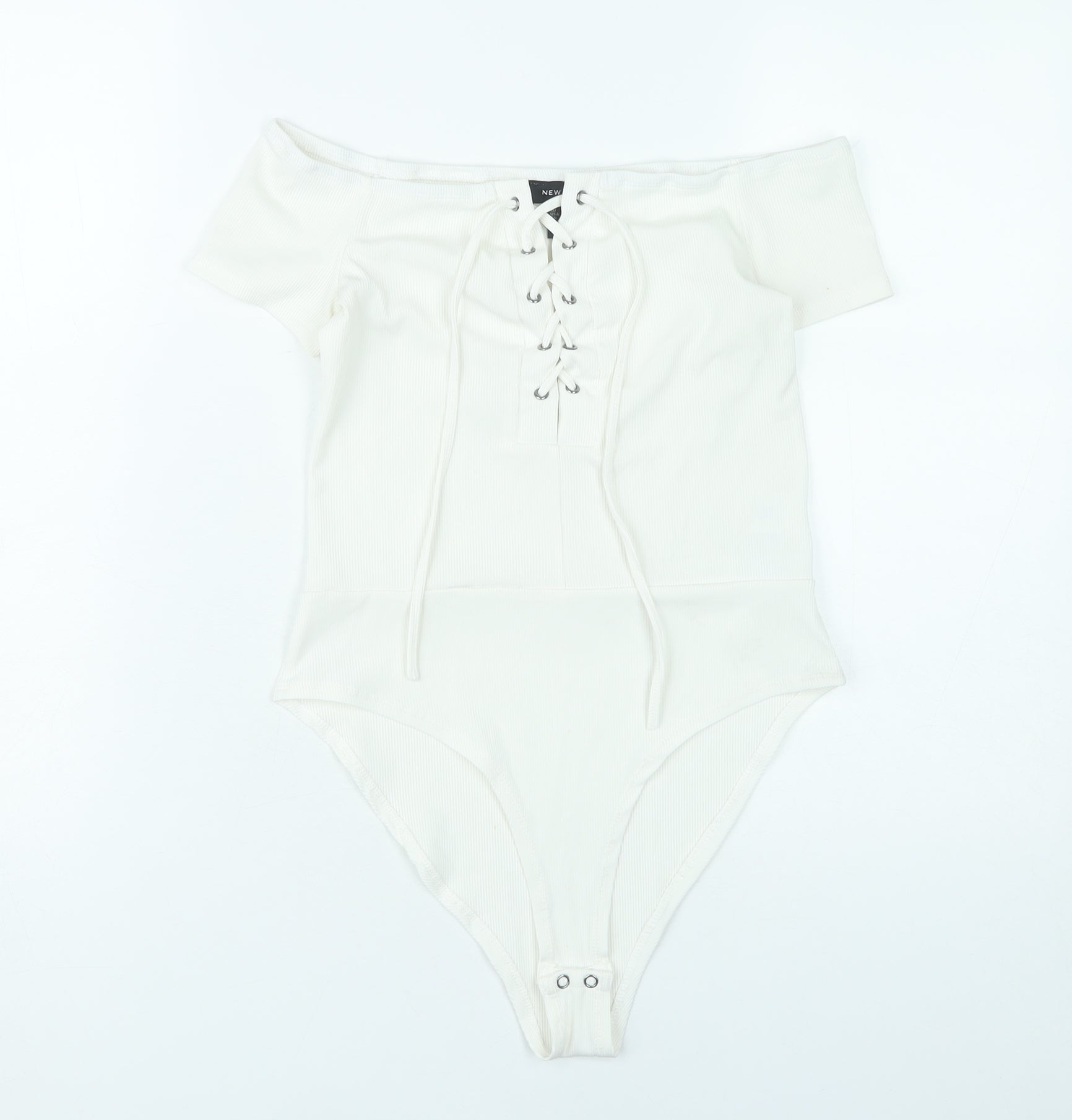 New Look Women’s Ivory Off-Shoulder Lace Up Bodysuit UK 12