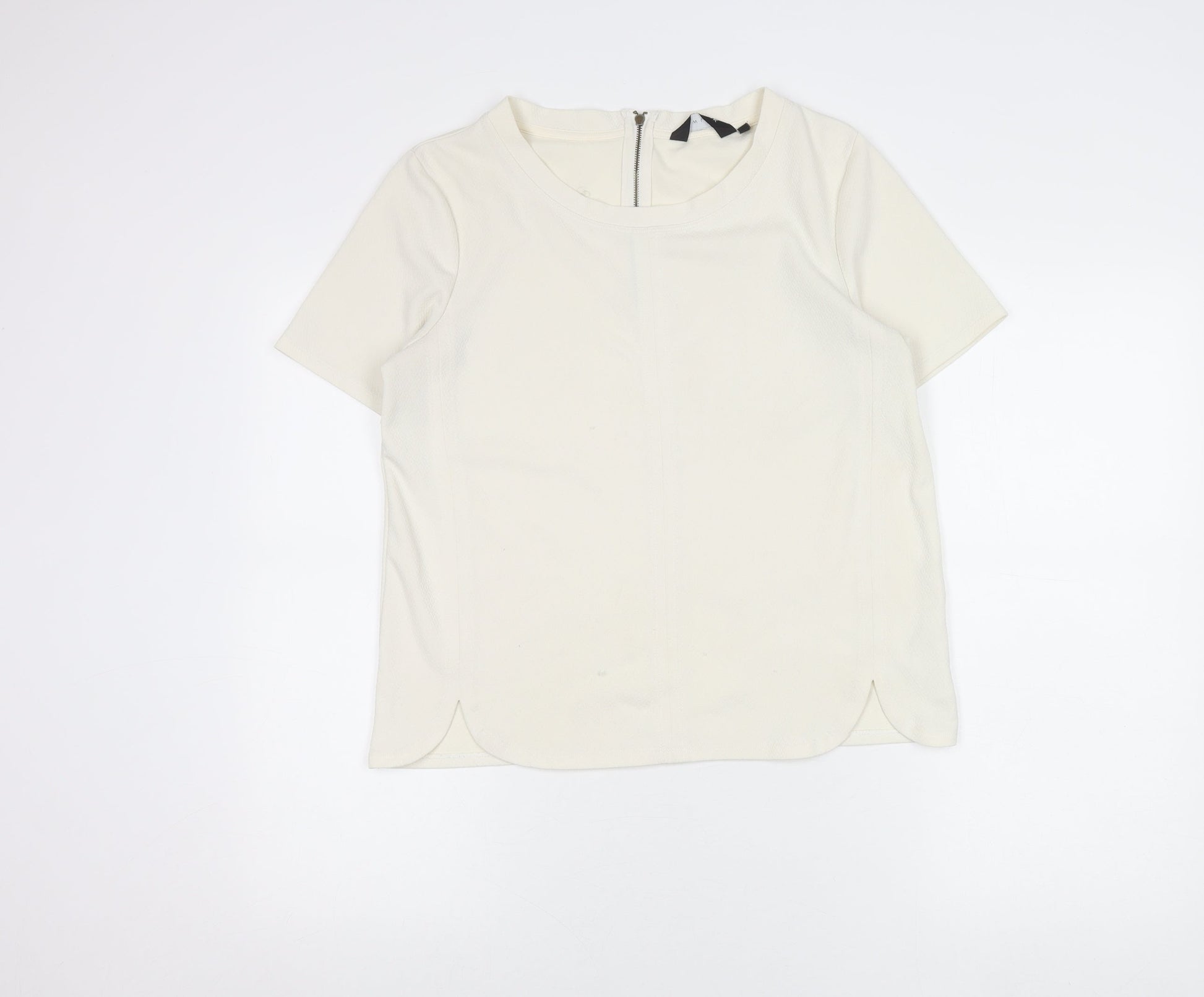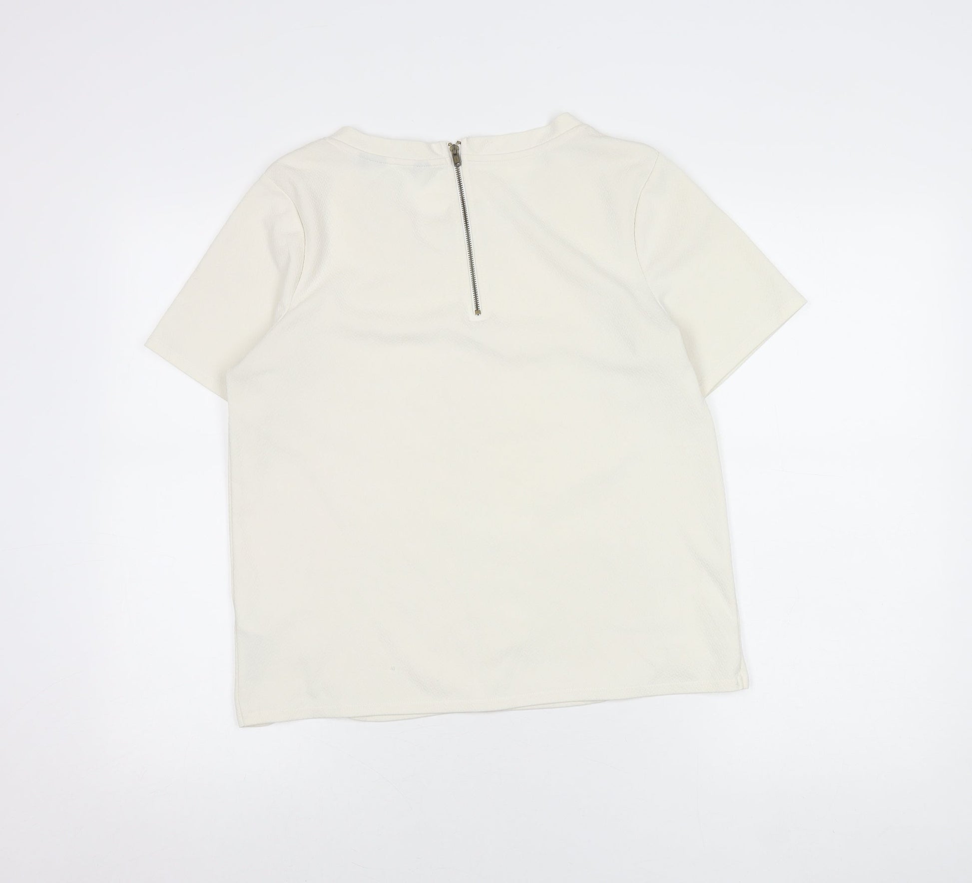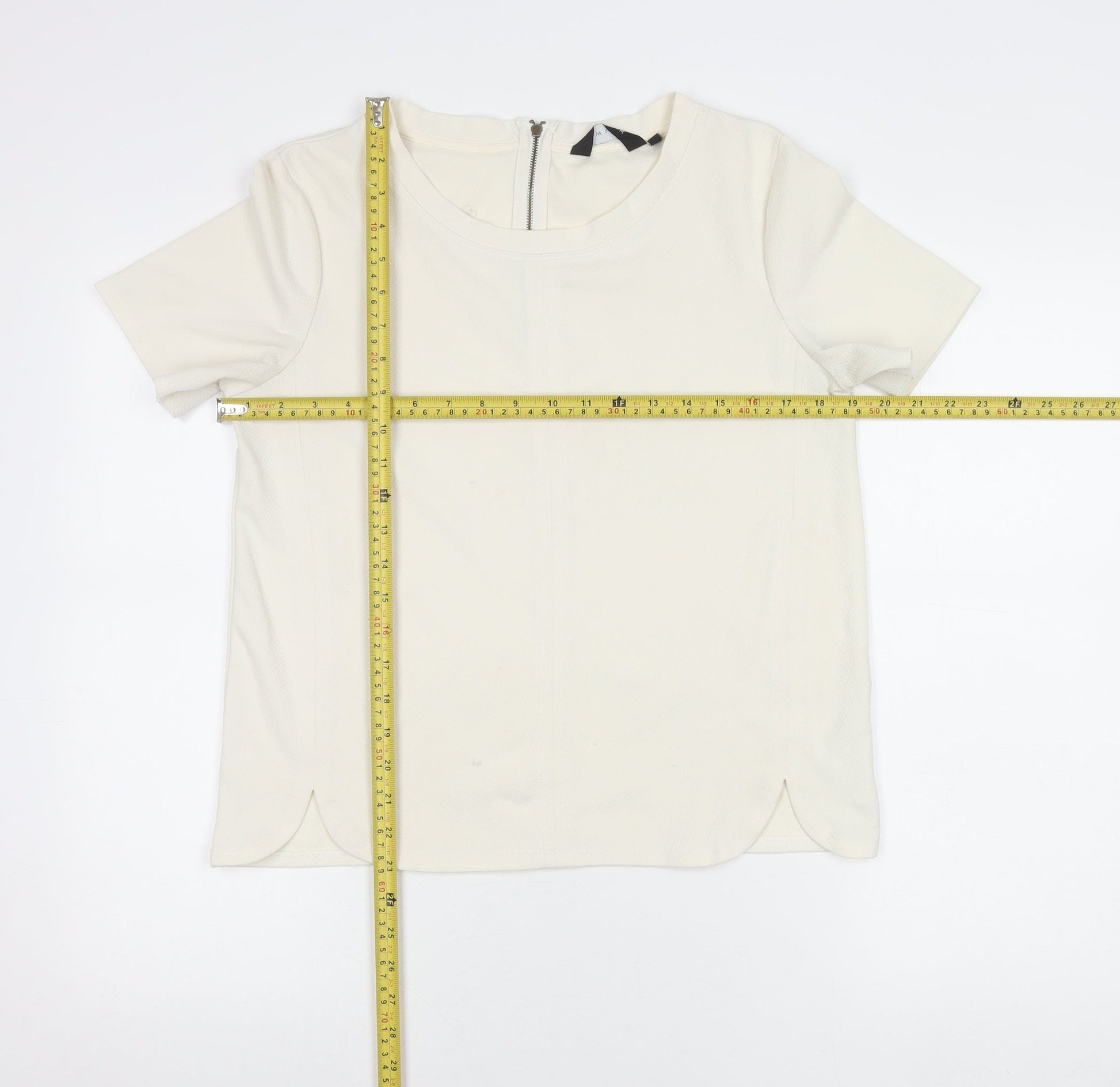 New Look Women’s Ivory Short Sleeve Zip Back Top Size 10