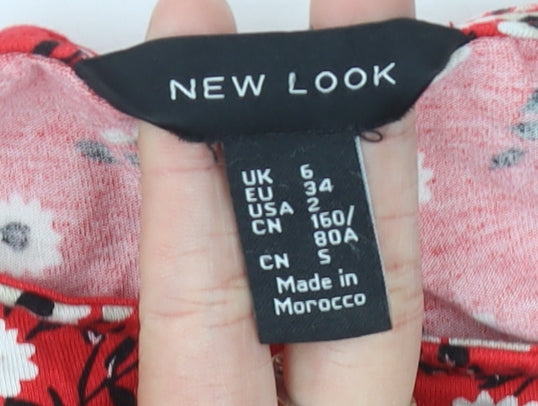 New Look Women’s Red Floral Tunic Blouse Size 6 Short Sleeve