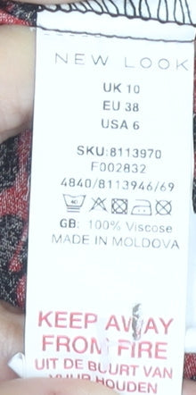 New Look Women’s Red Leopard Print V-Neck Long Sleeve Blouse Size 10