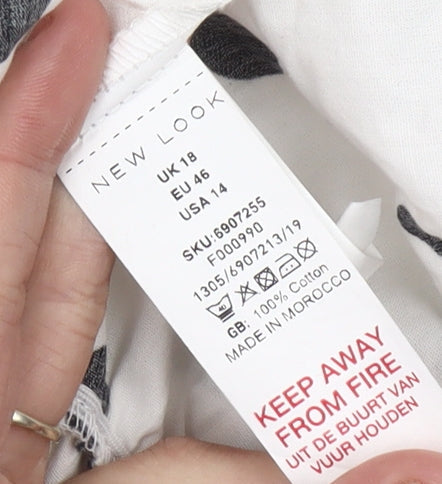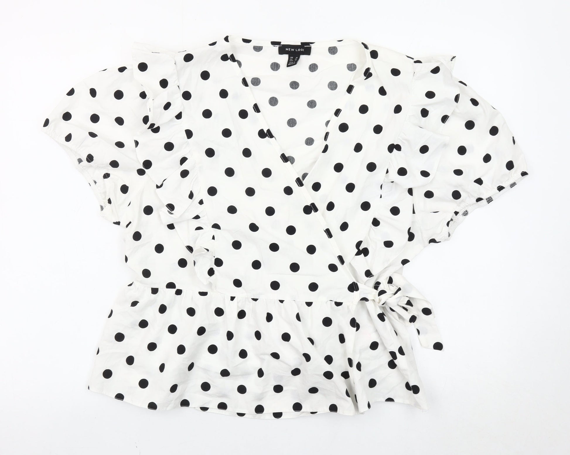 New Look Women’s White Polka Dot Wrap Blouse UK 18 Ruffle Short Sleeve