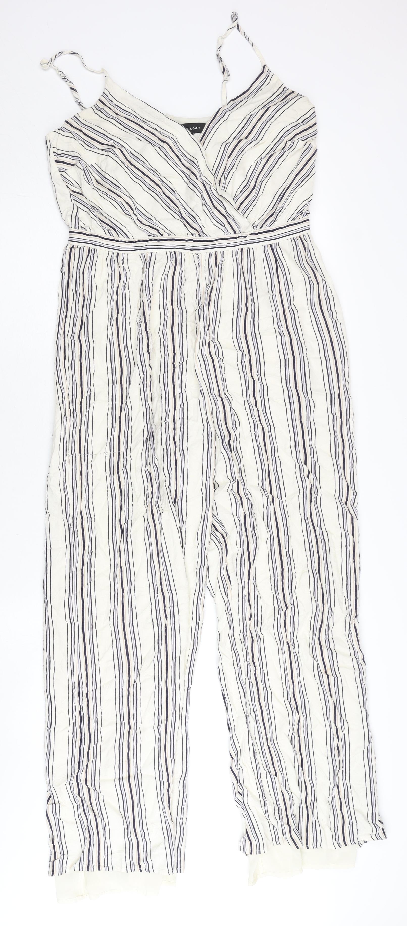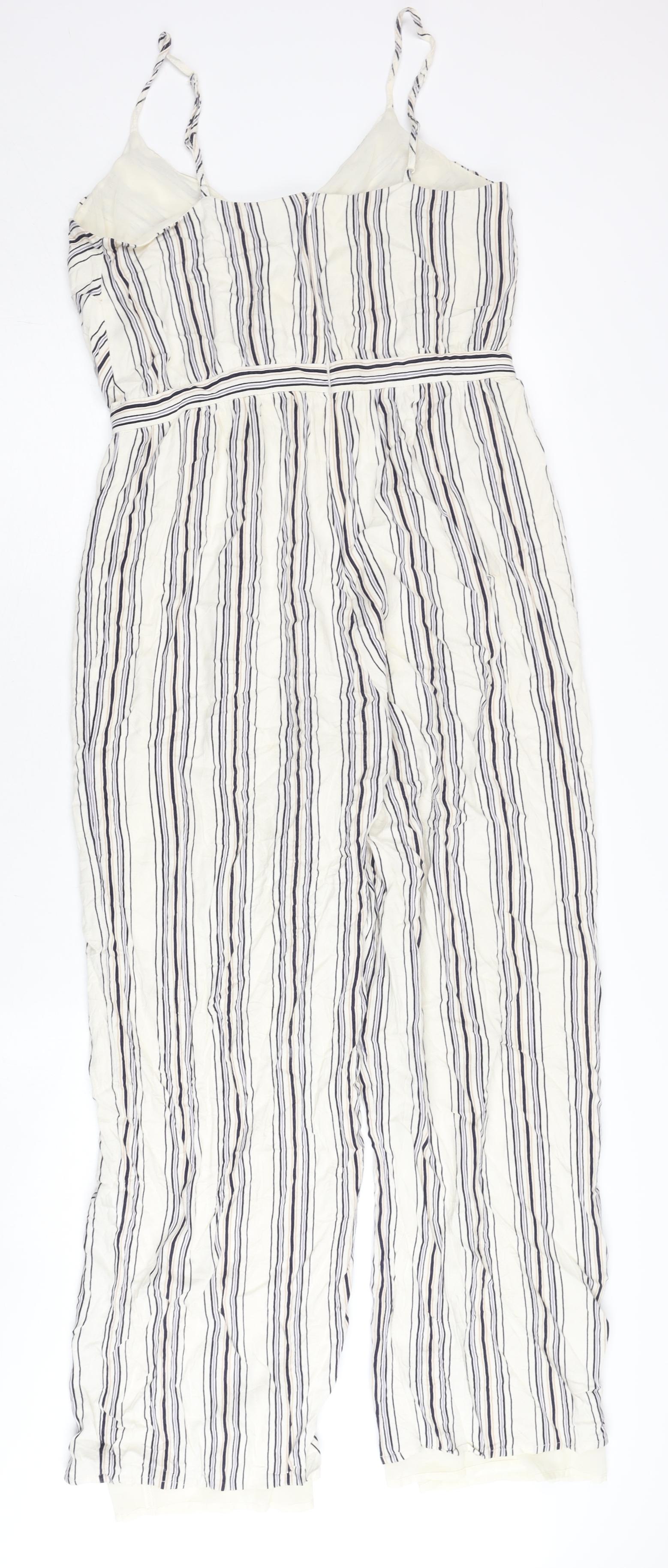 New Look Women’s White Striped Jumpsuit Size 12 Sleeveless Wide-Leg