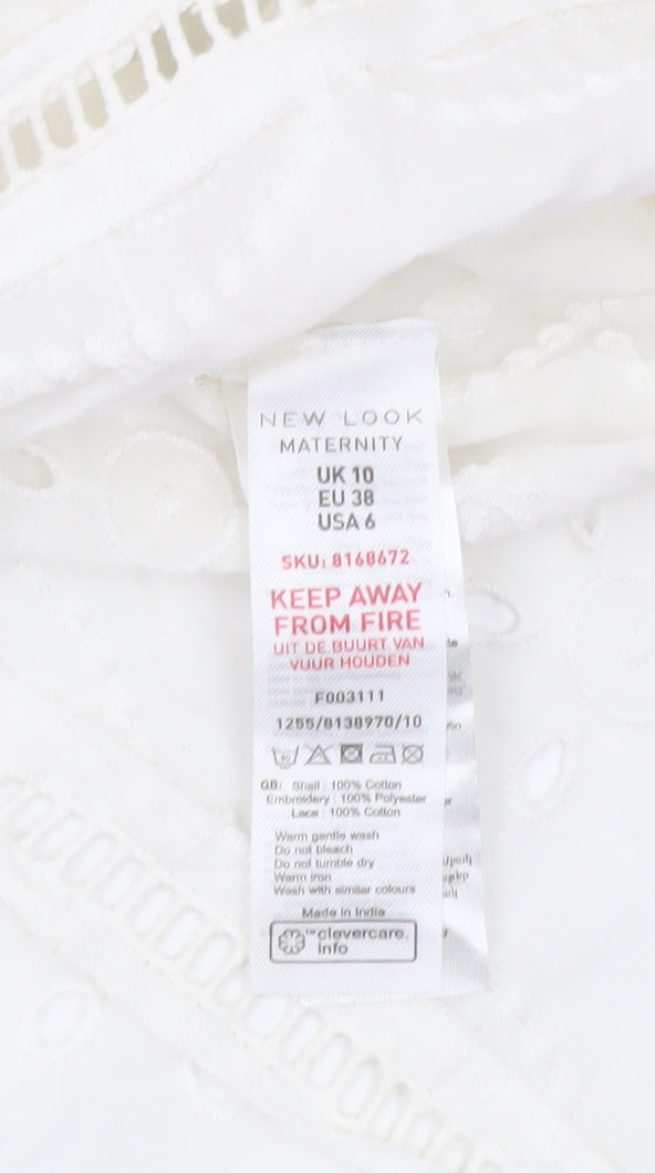 New Look Women White Maternity Blouse Size 10 Lace Ruffle Tunic Top