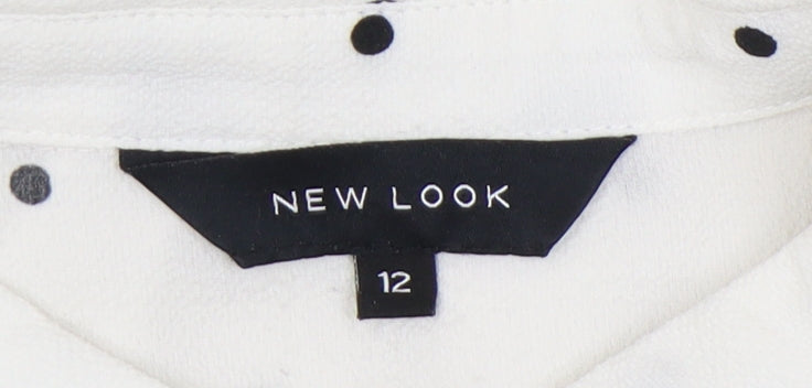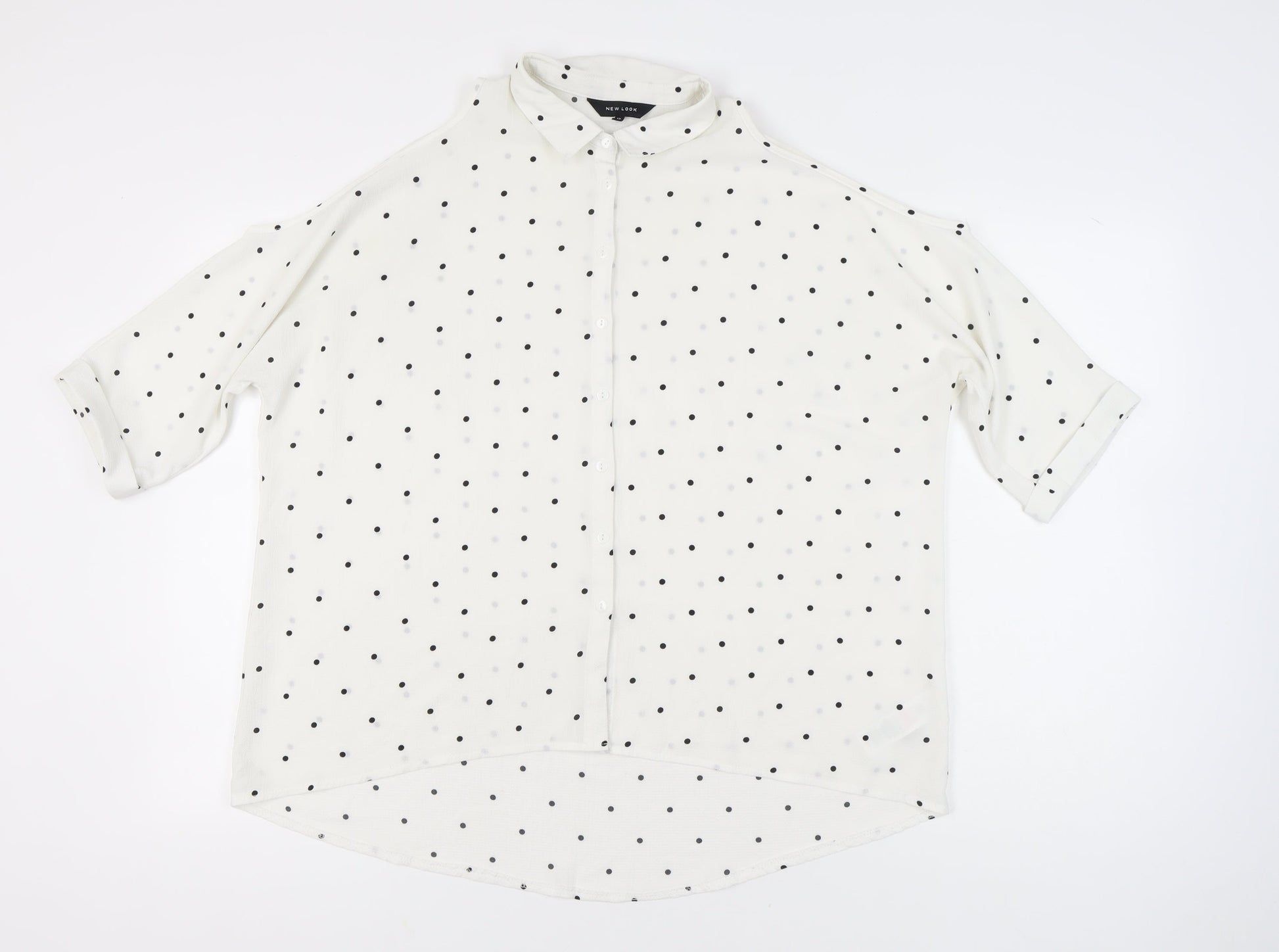 New Look Women White Polka Dot Cold Shoulder Button-Up Shirt Size 12