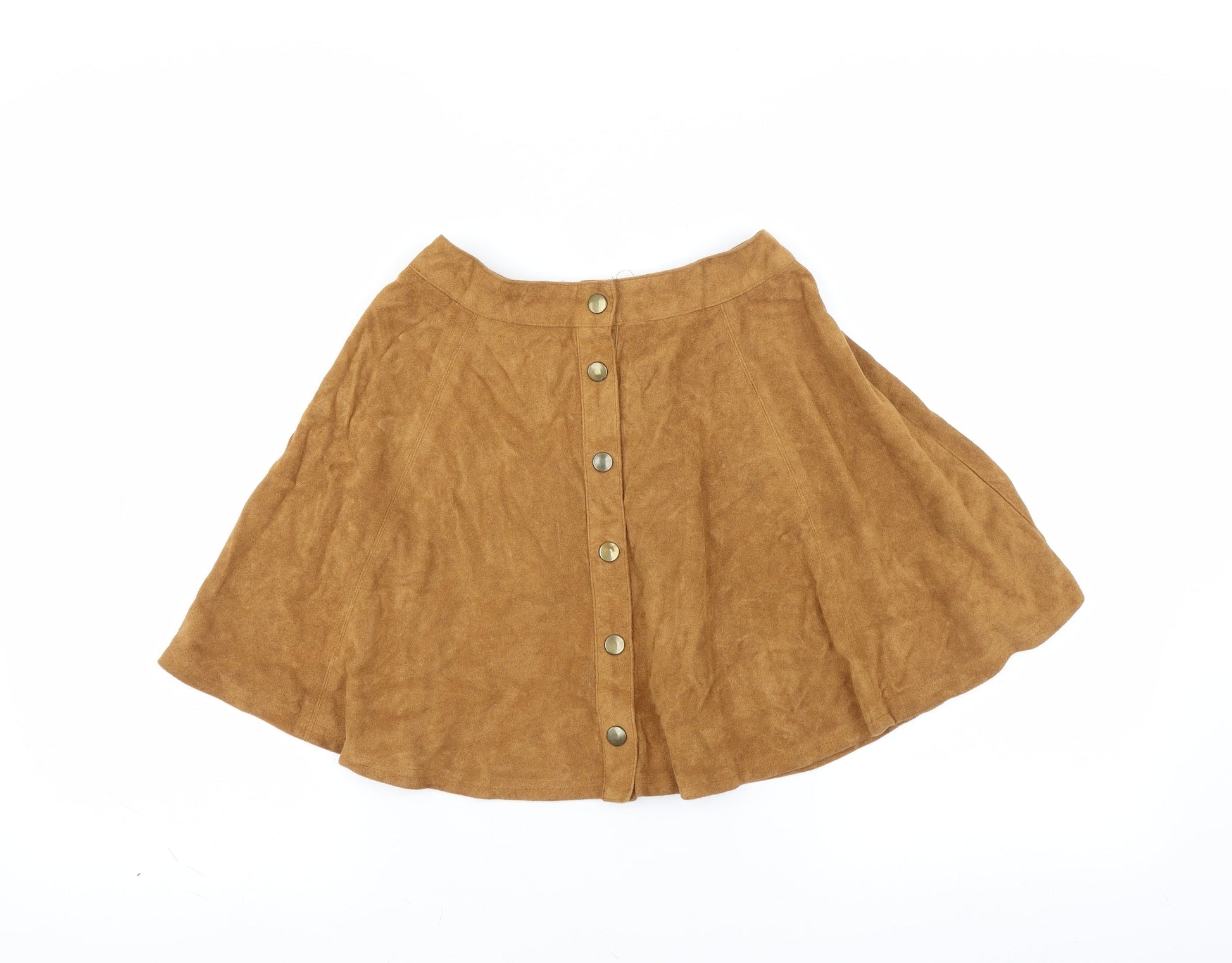 New Look Womens Beige A-Line Skirt Size 4 - button front