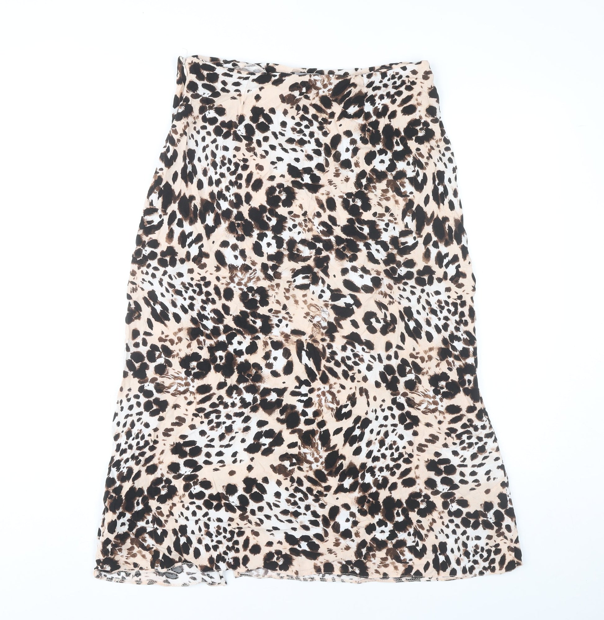 New Look Womens Beige Animal Print Midi Skirt Size 12 Viscose