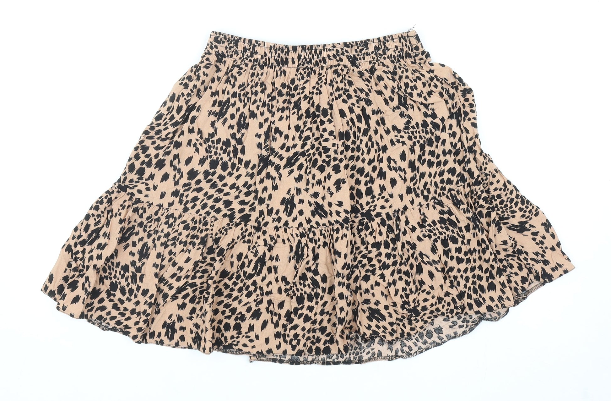 New Look Womens Beige Animal Print Viscose Peasant Skirt Size 10 - Leopard Print