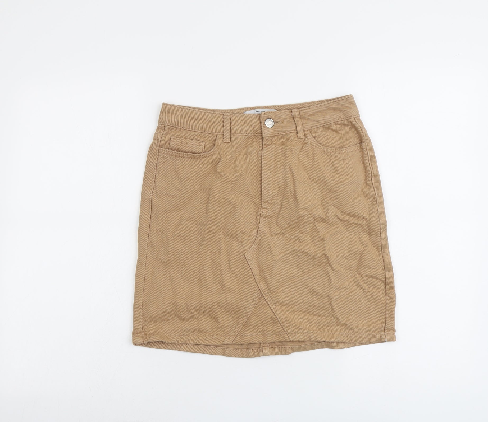 New Look Womens Beige Cotton A-Line Skirt Size 8 Button