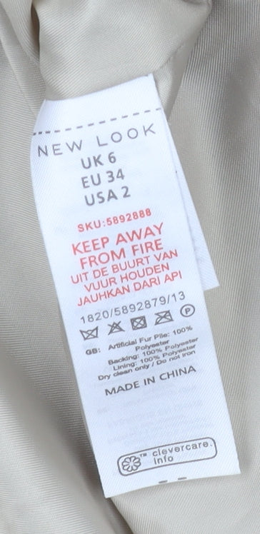 New Look Women's Beige Faux Fur Bomber Jacket Size 6