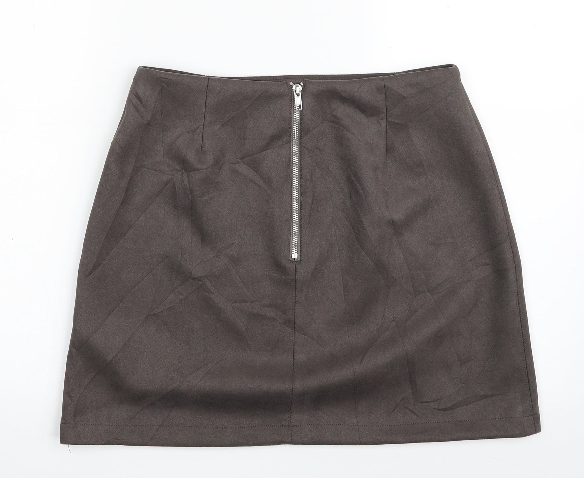 New Look Womens Beige Polyester A-Line Skirt Size 12 Zip