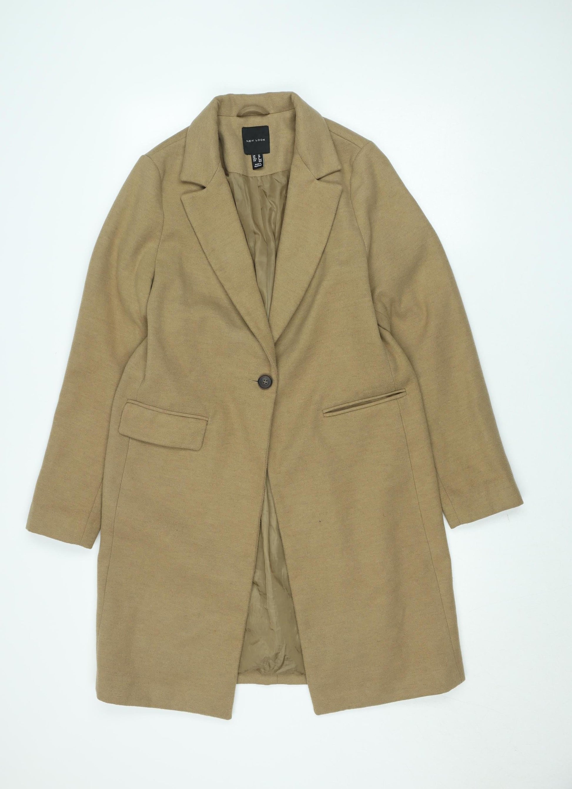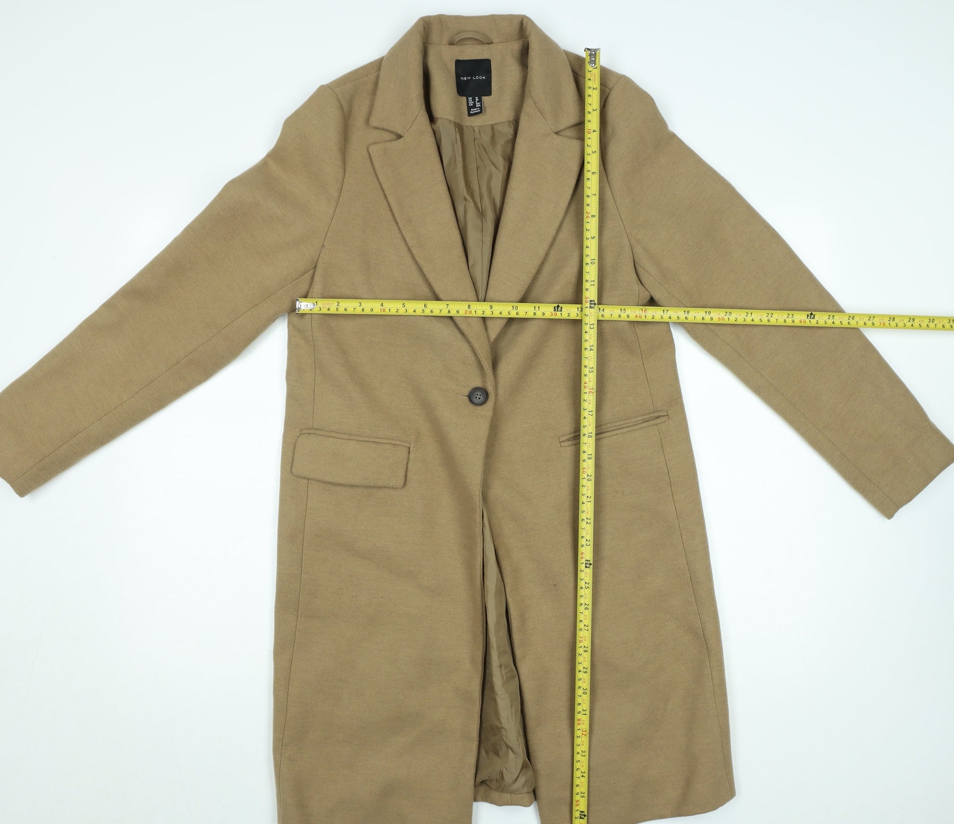 New Look Women's Beige Wool Blend Long Overcoat Size 10
