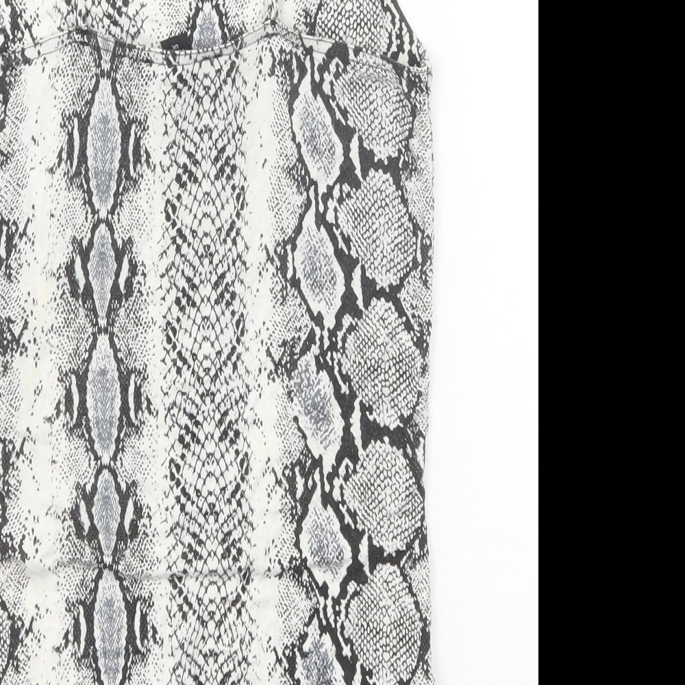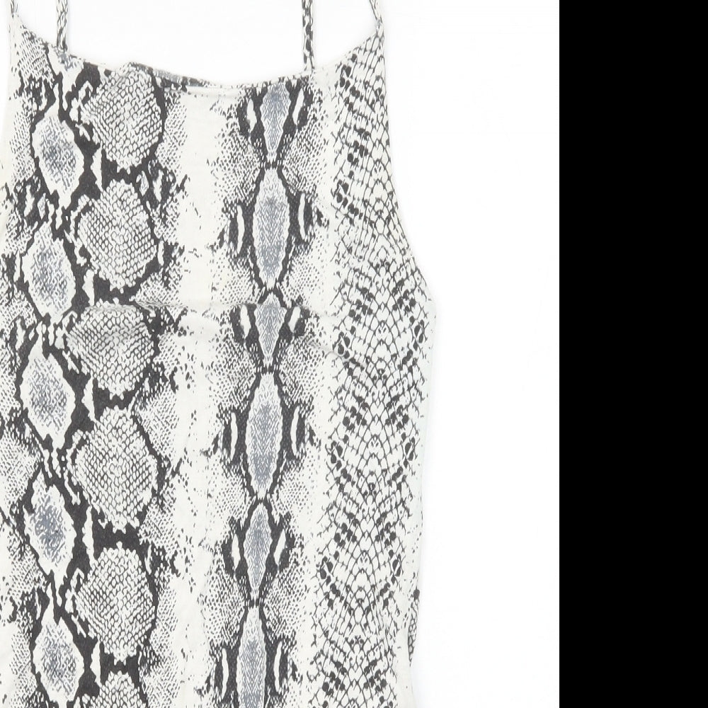 New Look Womens Black Animal Print Viscose Bodysuit One-Piece Size 10 Snap - Snakeskin Pattern