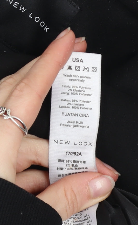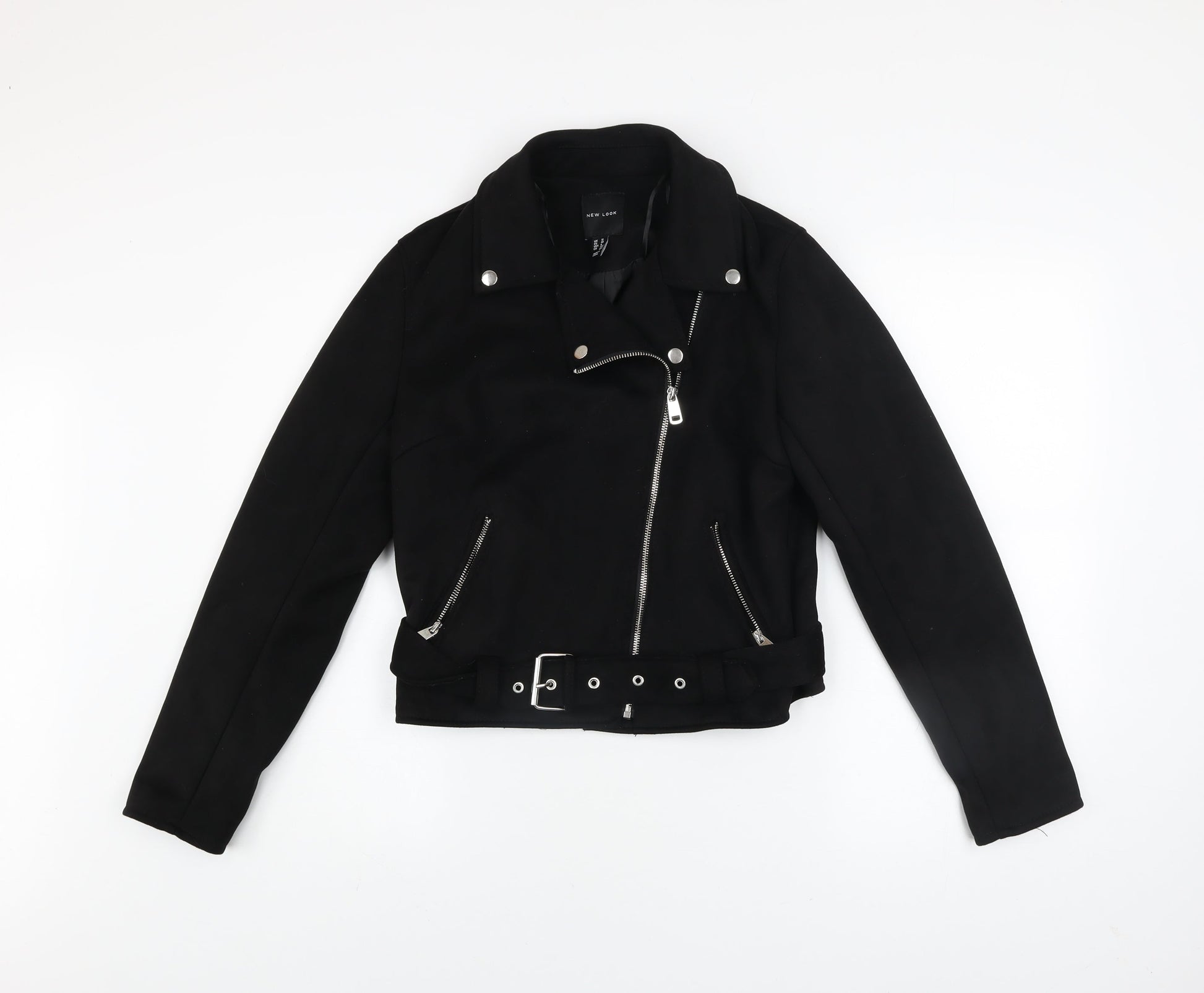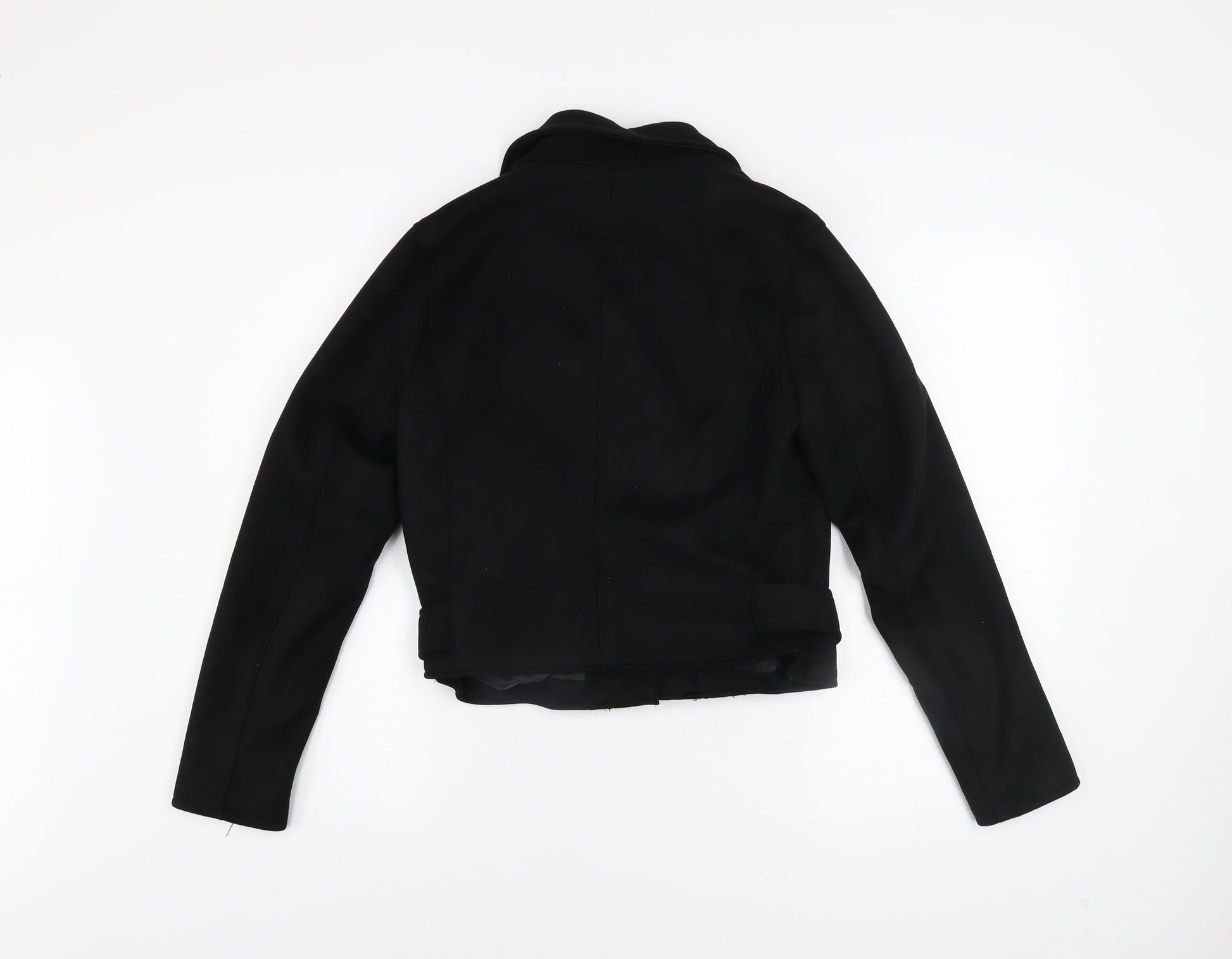 New Look Womens Black Biker Jacket Size 12 Belted Zip Short Softshell