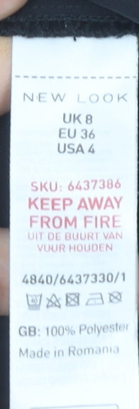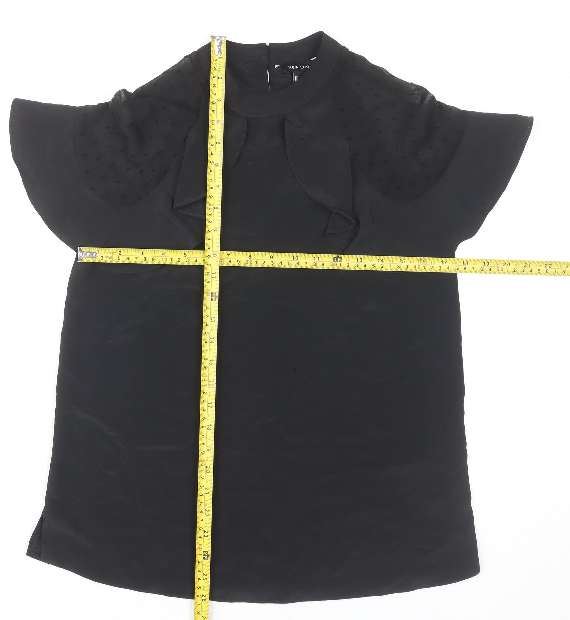 New Look Womens Black Blouse Size 8 Flutter Sleeve Tunic Top