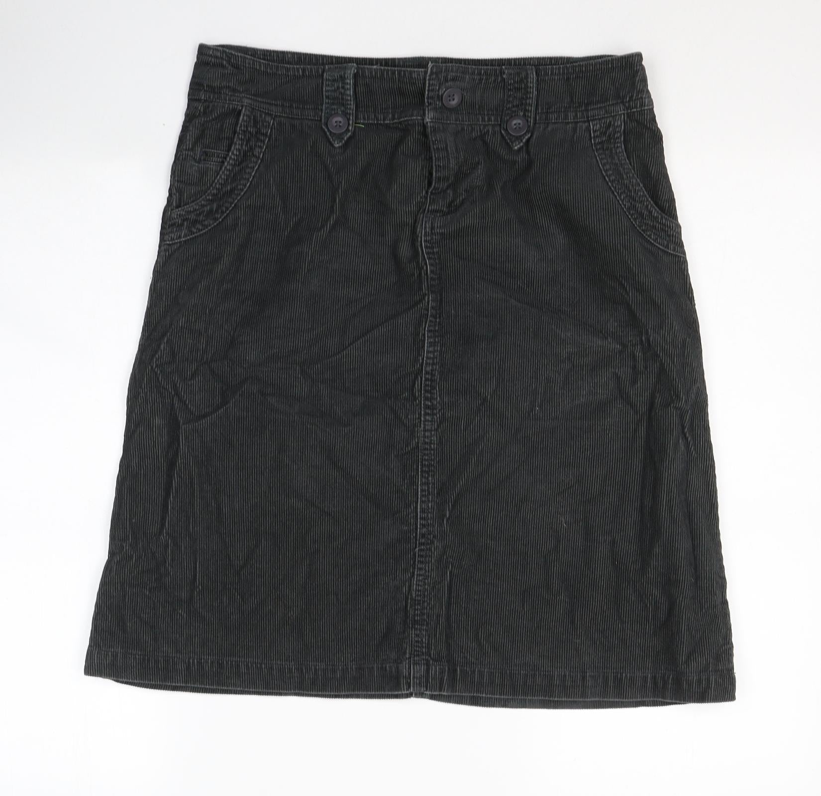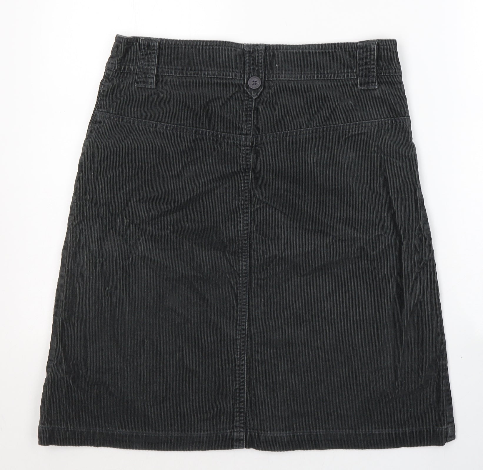 New Look Womens Black Cotton A-Line Skirt Size 10 Button