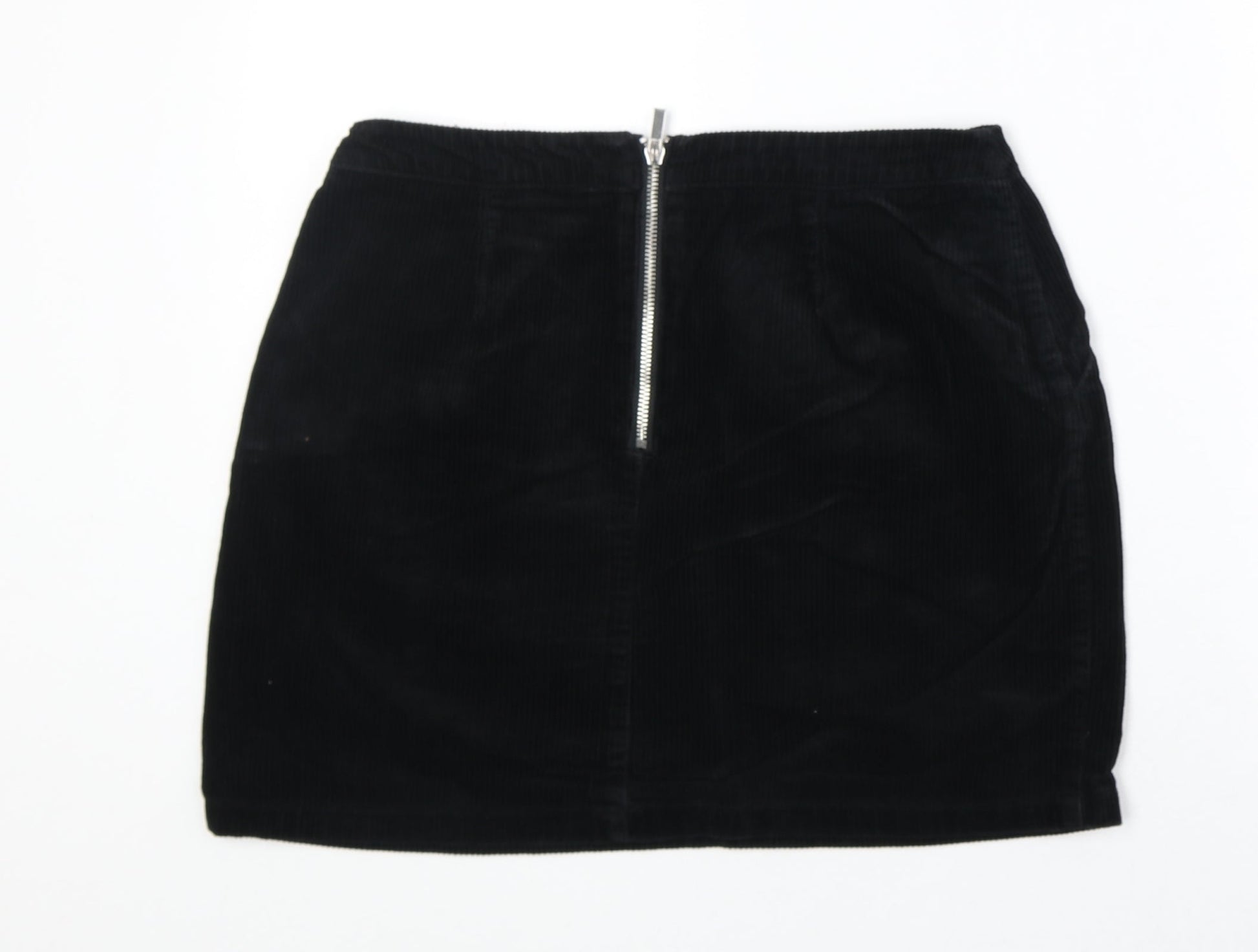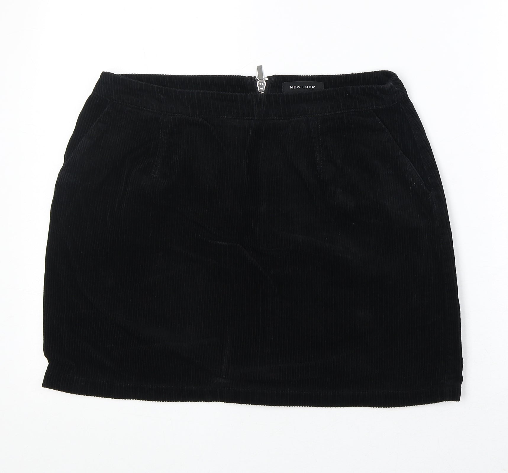 New Look Womens Black Cotton A-Line Skirt Size 10 Zip
