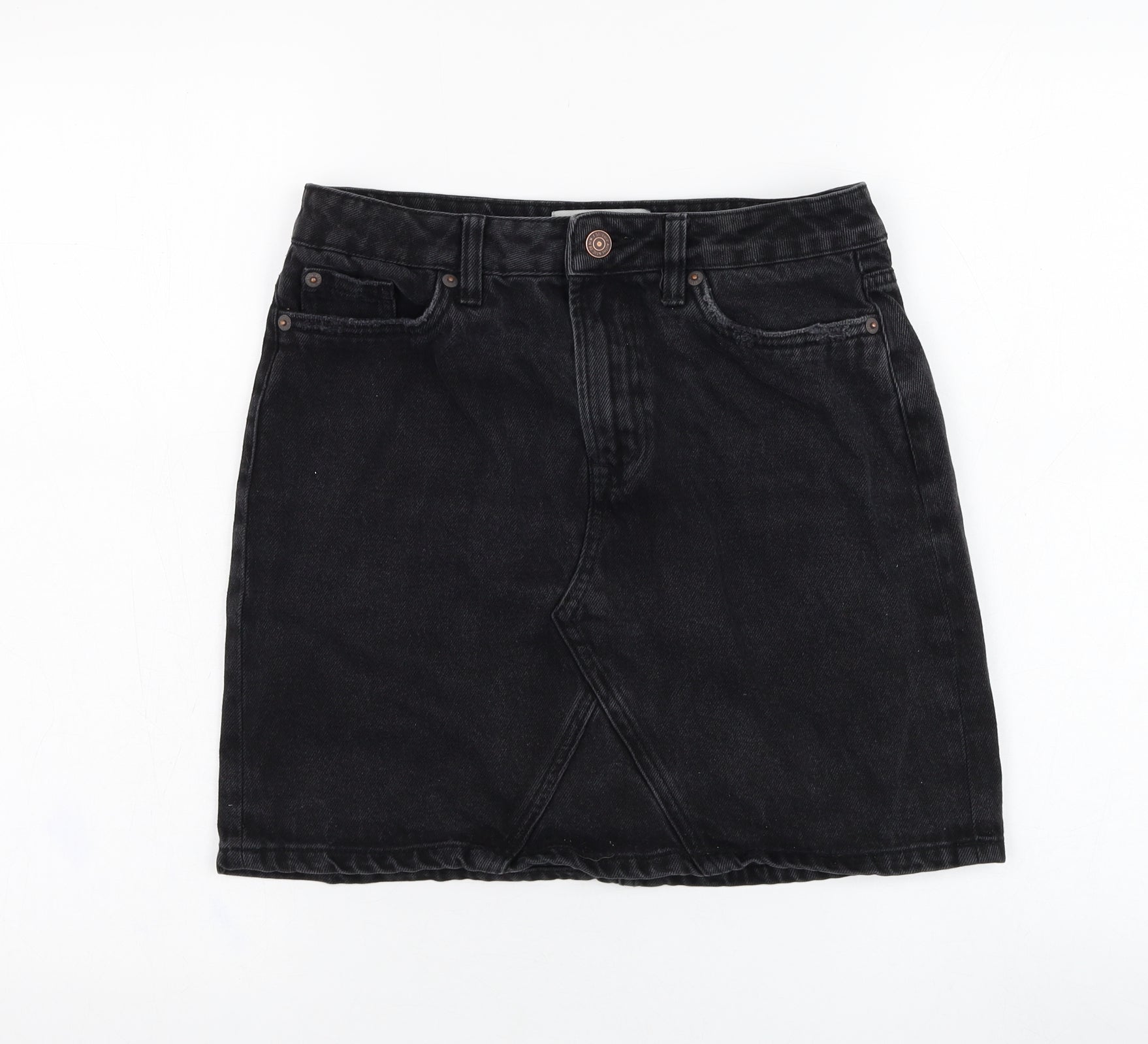 New Look Womens Black Cotton A-Line Skirt Size 8 Zip