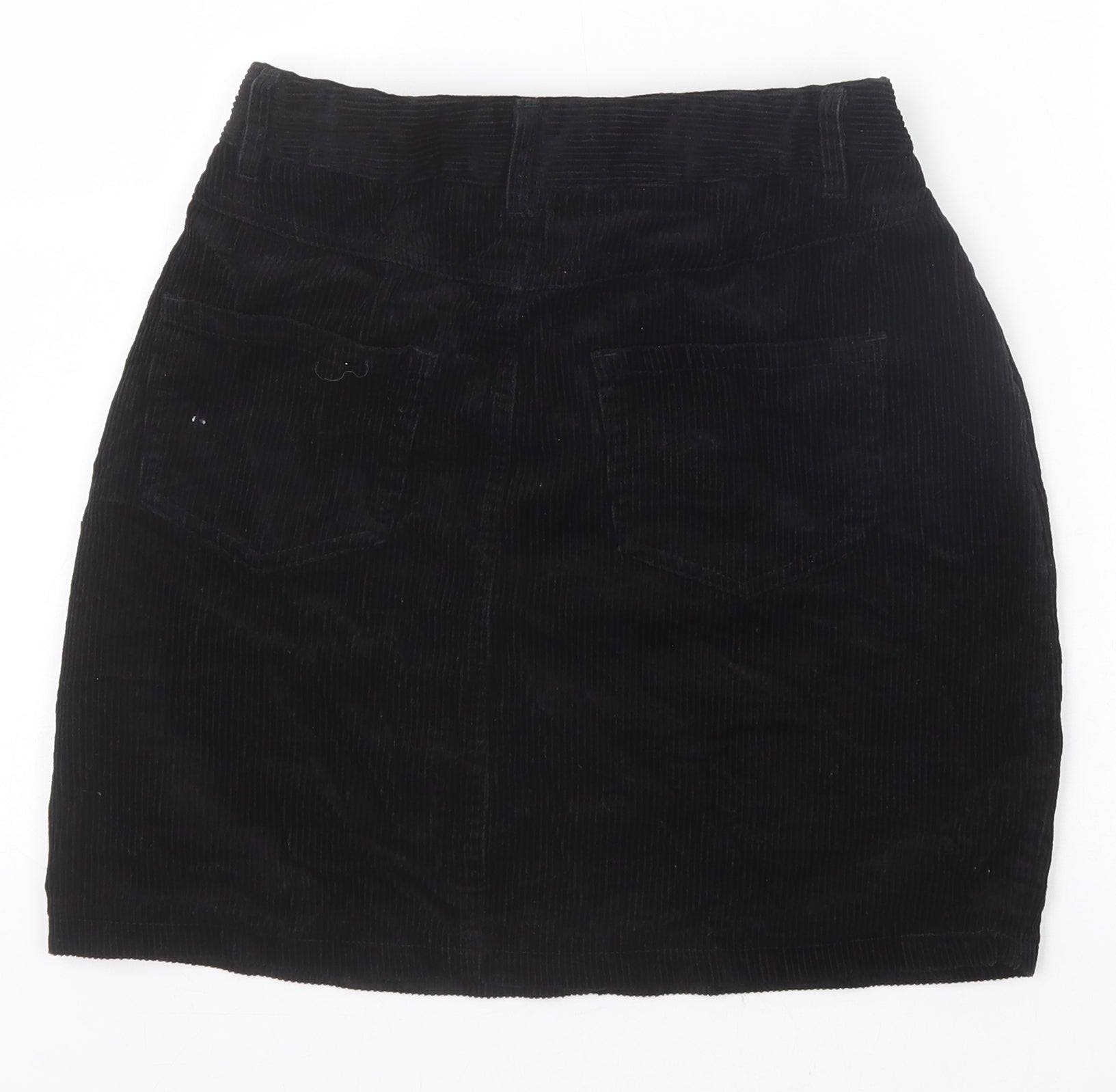 New Look Womens Black Cotton A-Line Skirt Size 8 Zip