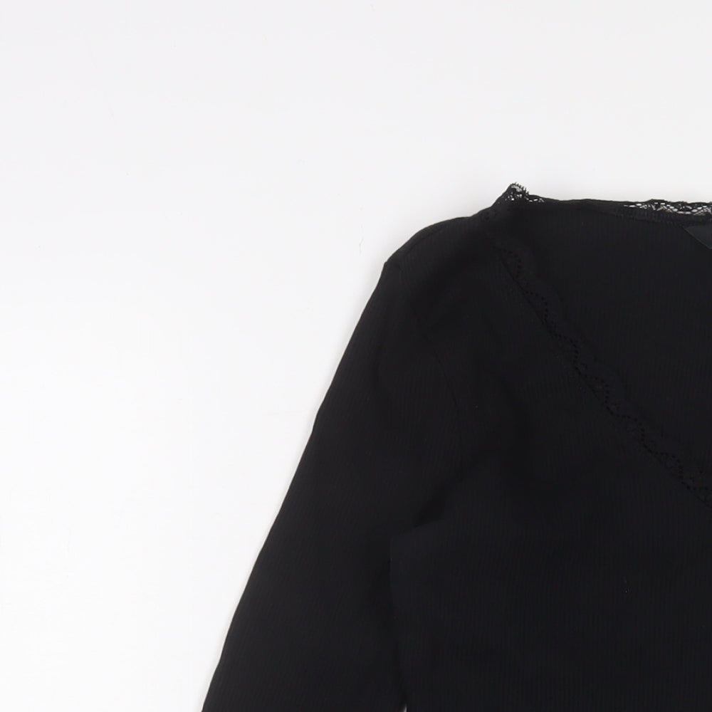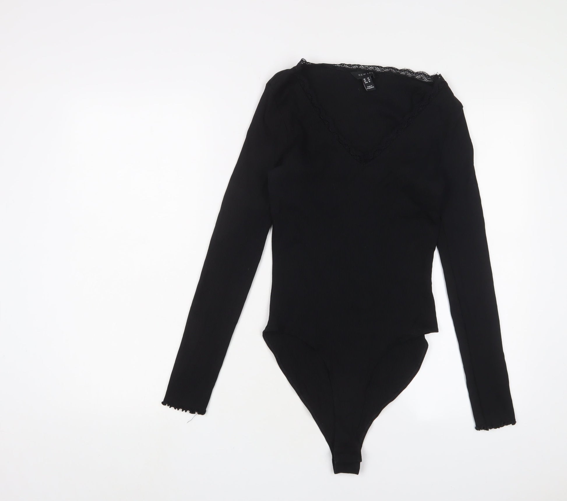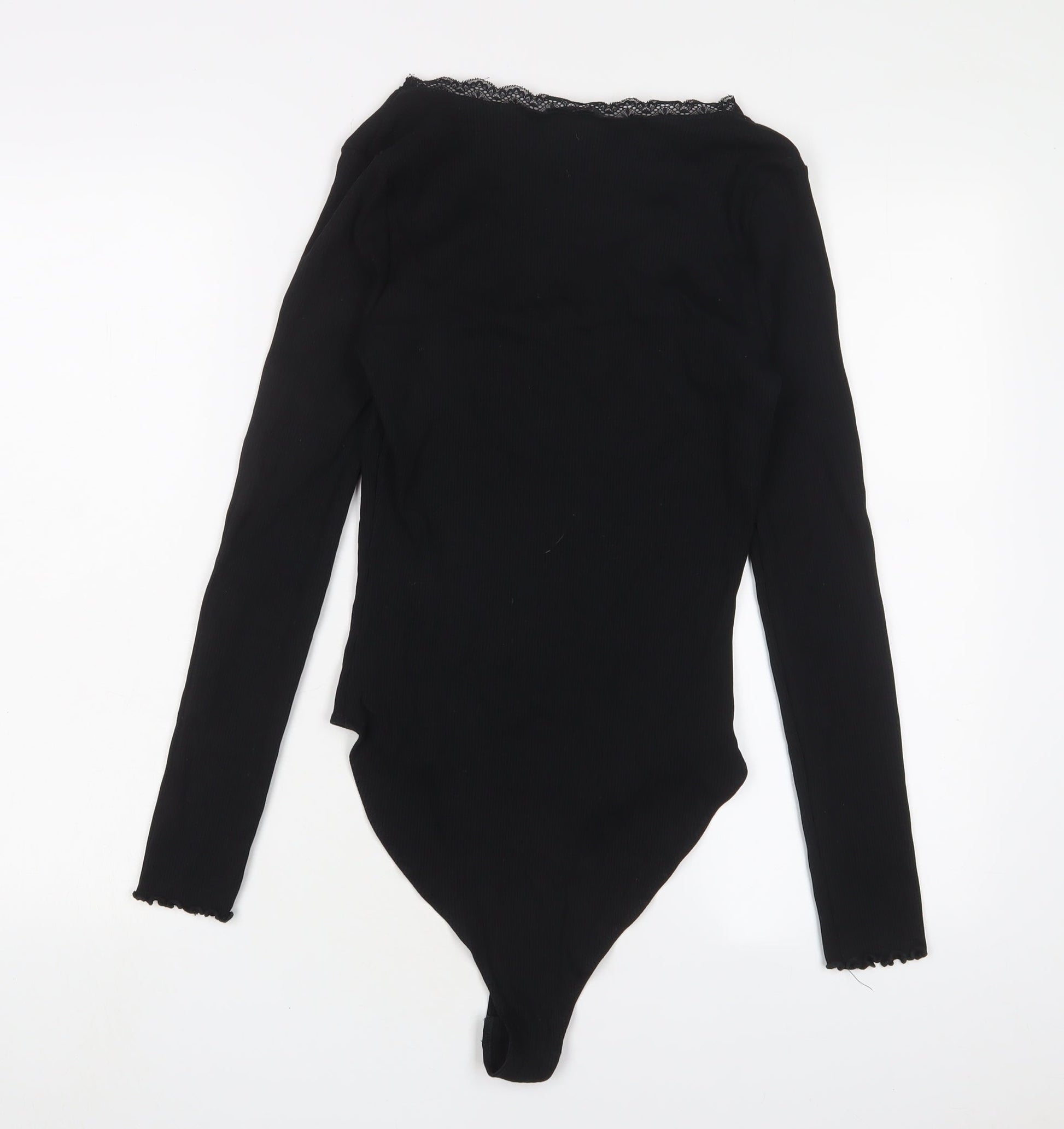 New Look Womens Black Cotton Bodysuit One-Piece Size 14 Snap - Lettuce Edging. Lace