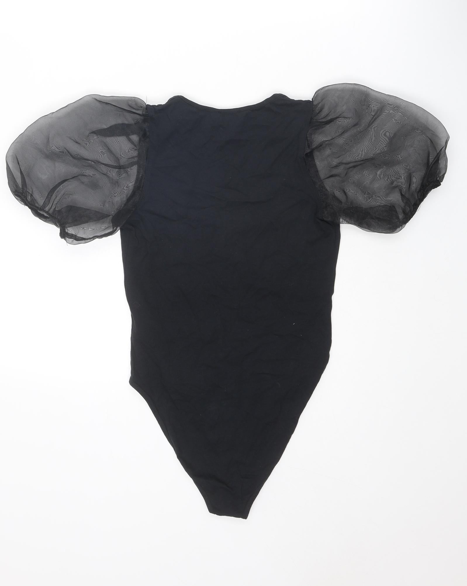 New Look Womens Black Cotton Bodysuit One-Piece Size 8 Snap