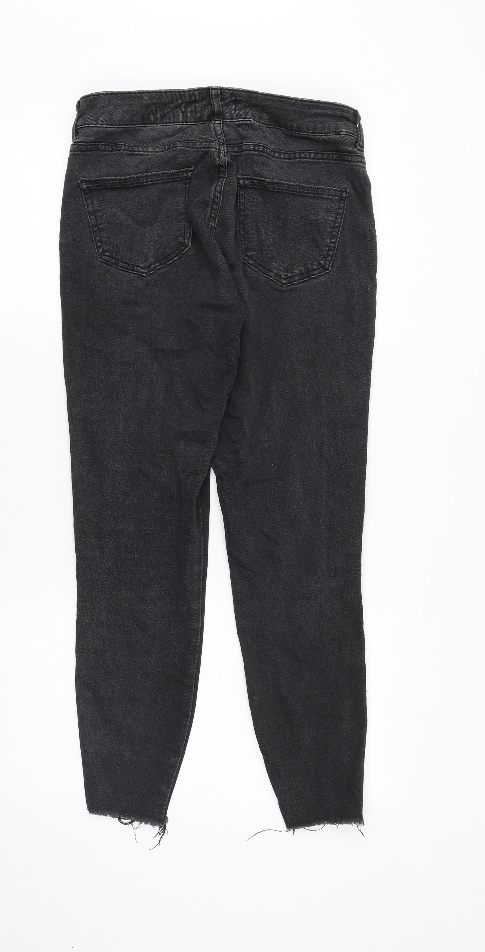 New Look Womens Black Cotton Skinny Jeans Size 10 Slim Zip - Distressed Hems