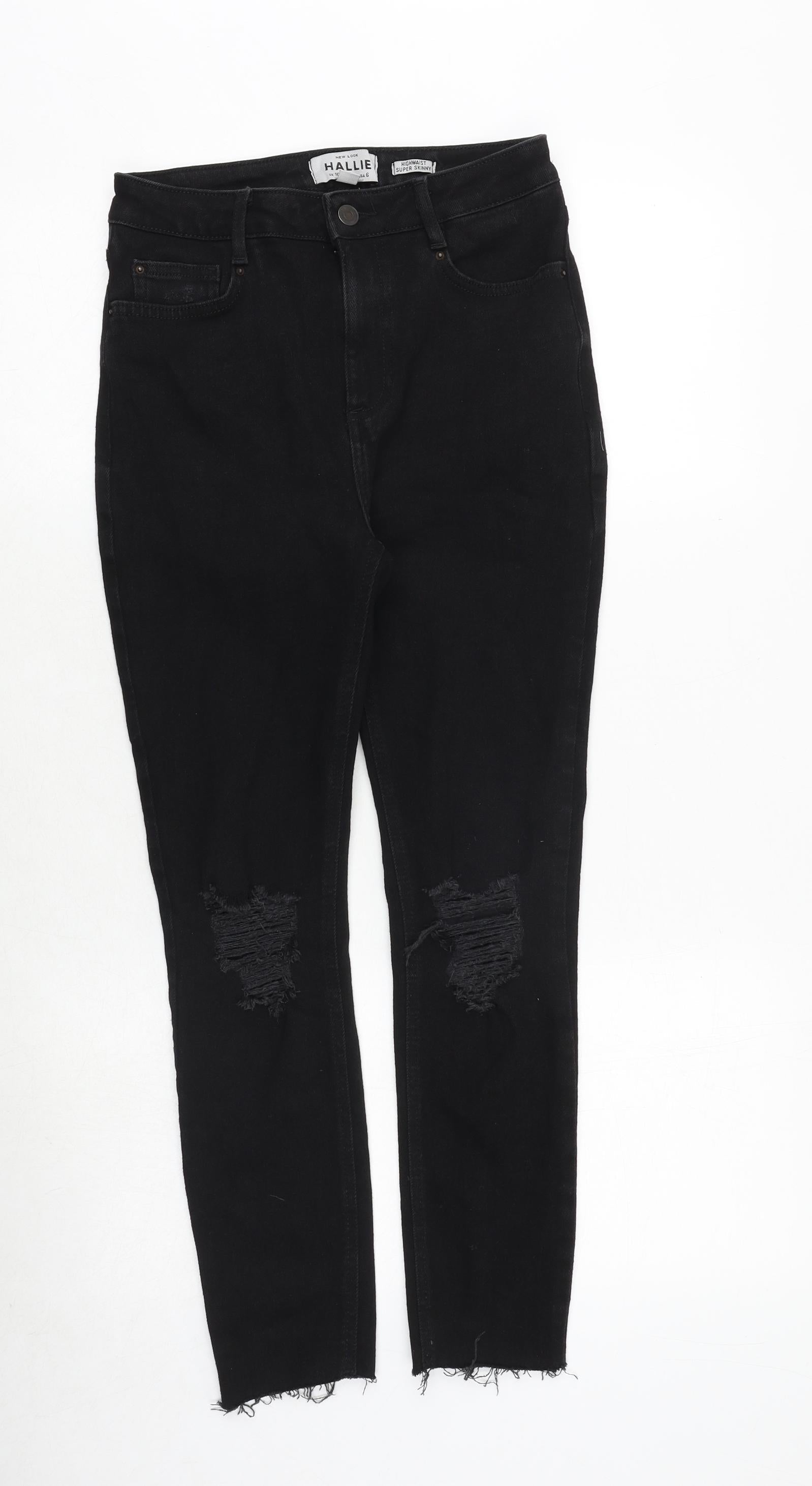 New Look Womens Black Cotton Straight Jeans Size 10 Regular Zip