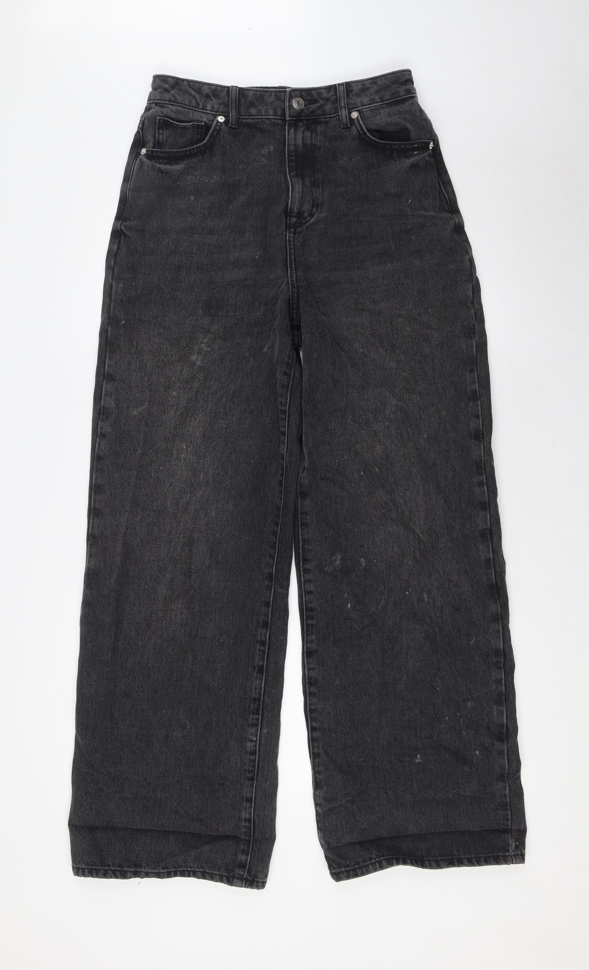 New Look Womens Black Cotton Wide-Leg Jeans Size 8 L31 in Regular Button