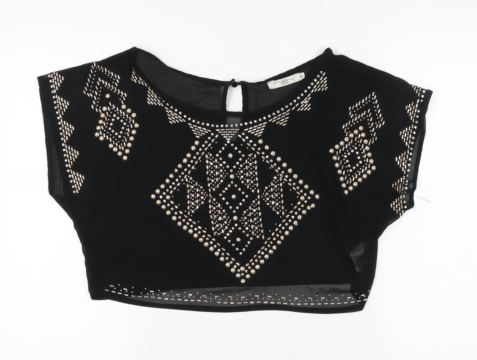 New Look Women's Black Cropped Studded Blouse, Size 10