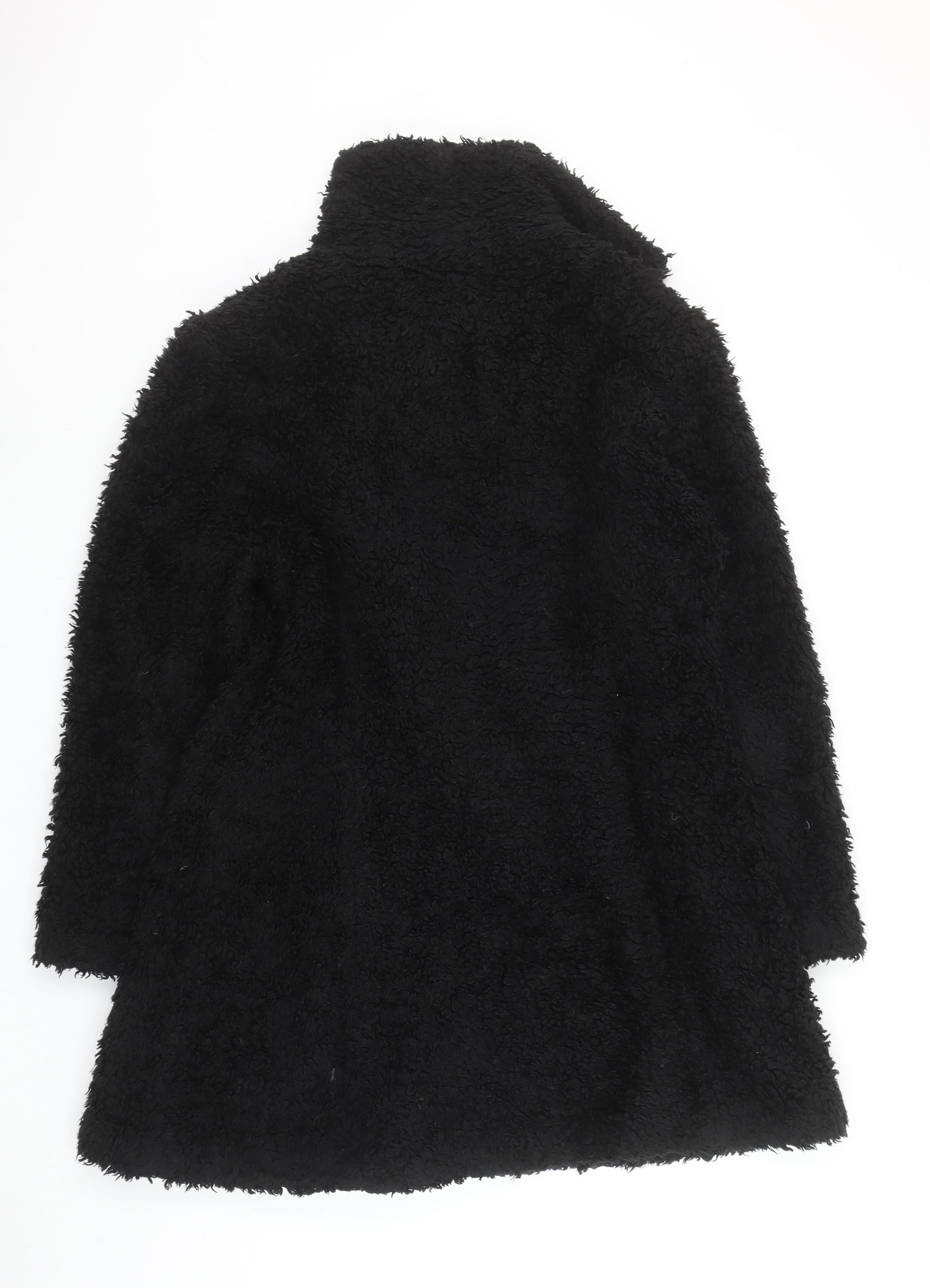 New Look Women's Black Faux Fur Long Overcoat Size 14