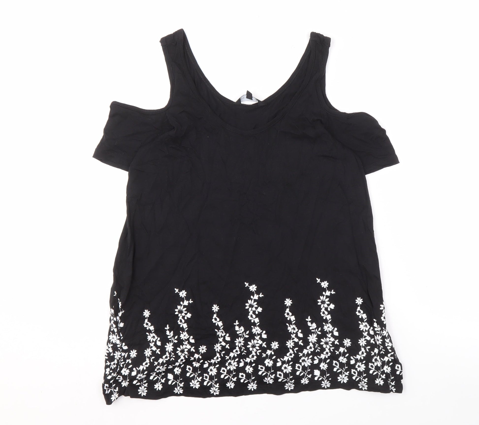 New Look Women's Black Floral 8 Cold Shoulder T-Shirt