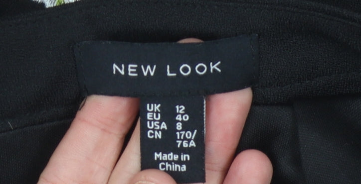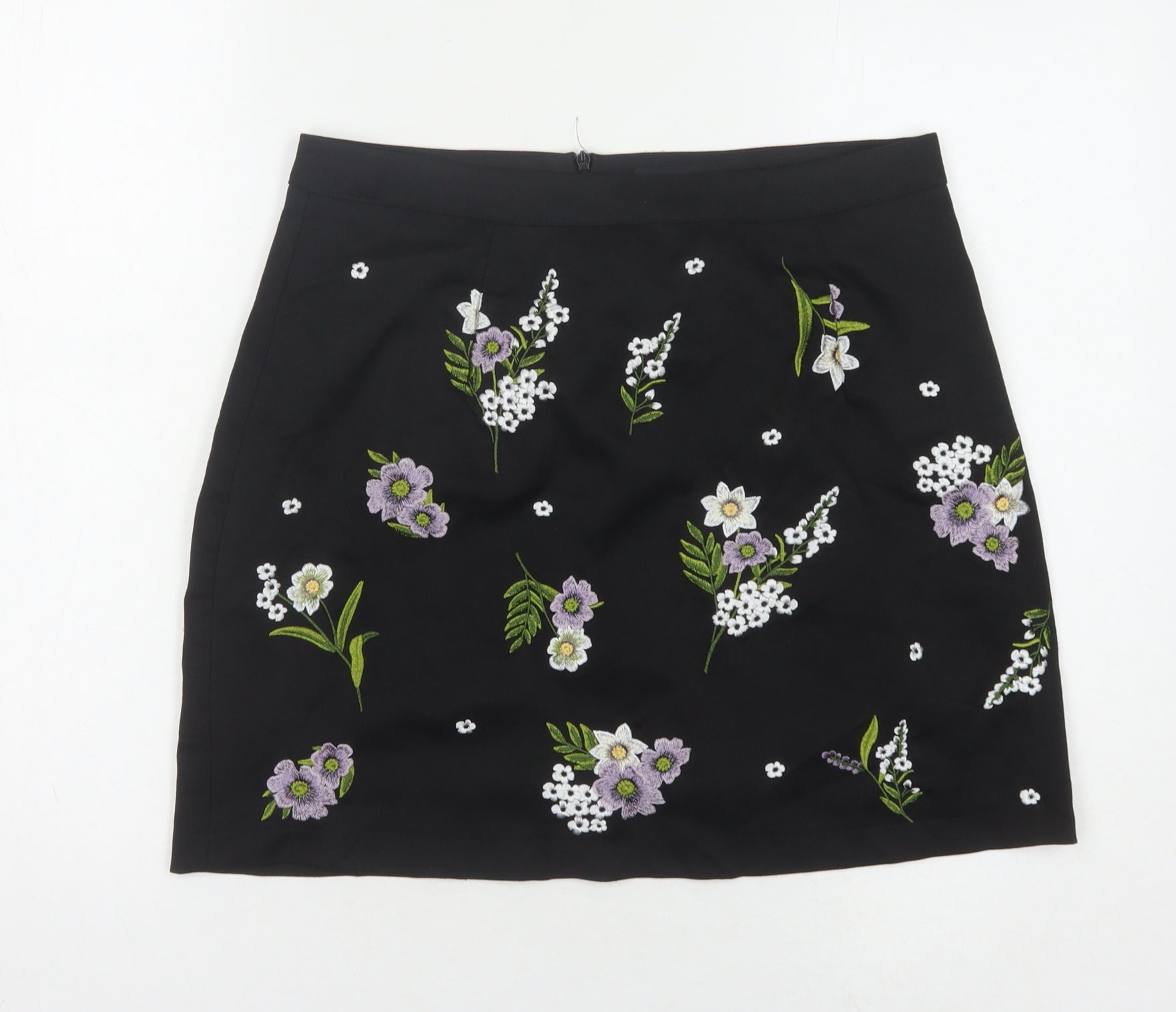 New Look Women's Black Floral Embroidered Skirt, Size 12