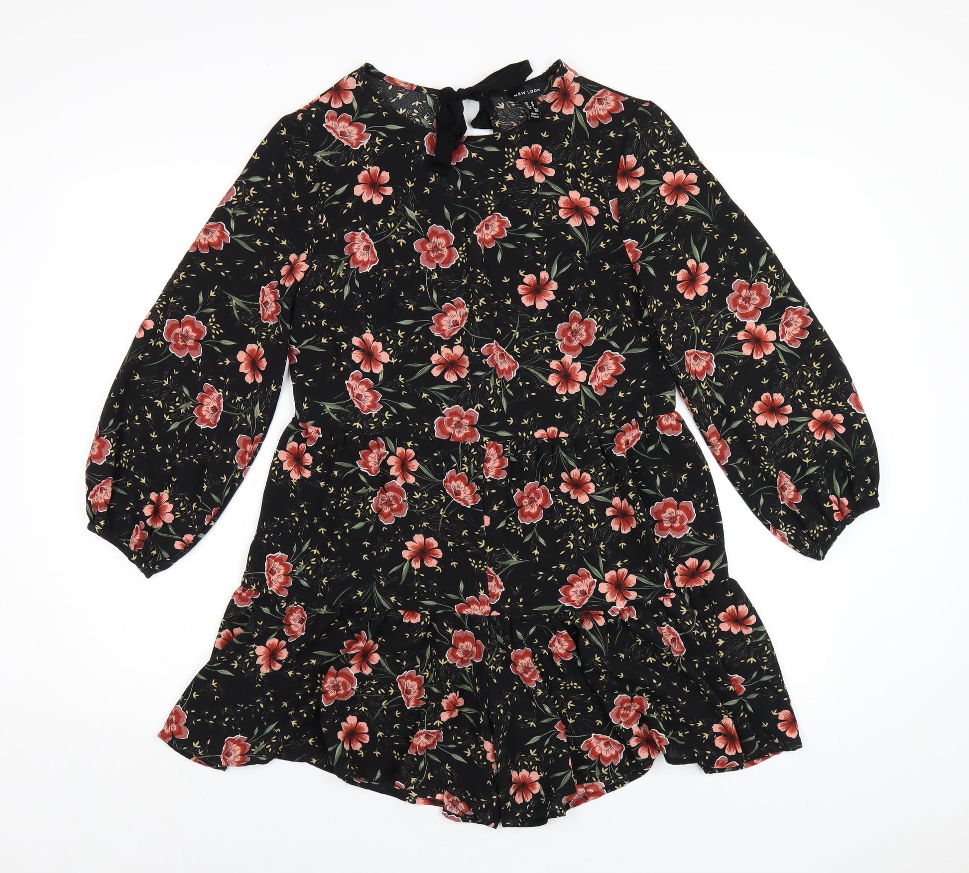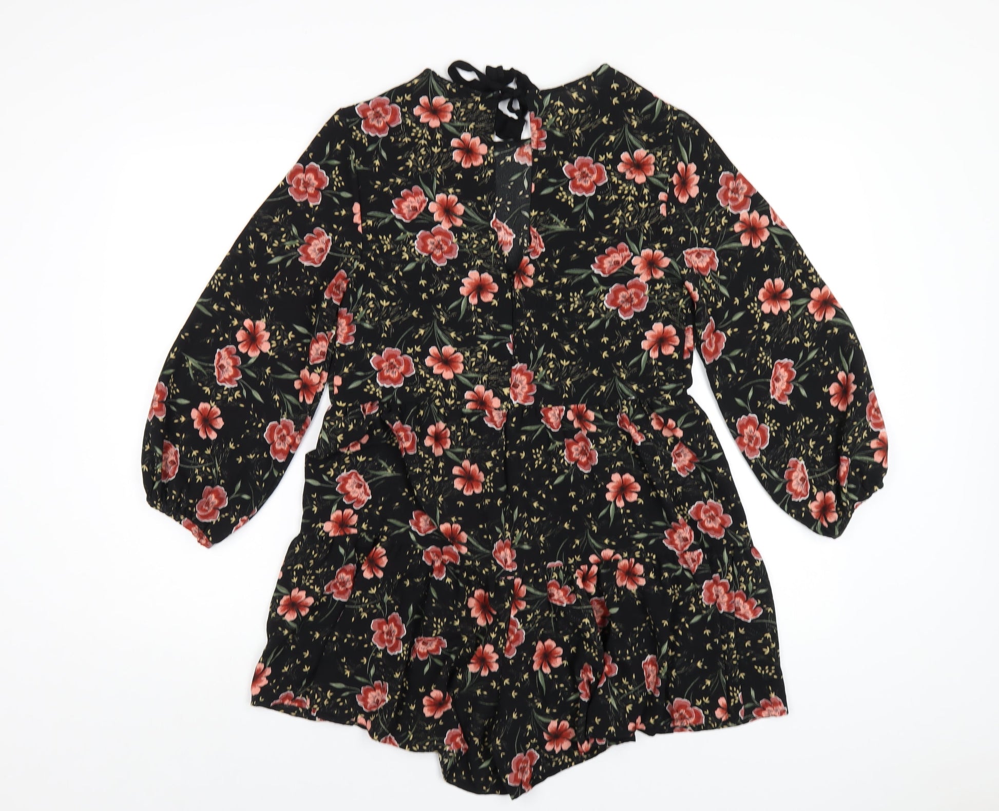 New Look Womens Black Floral Polyester Playsuit One-Piece Size 10 Zip