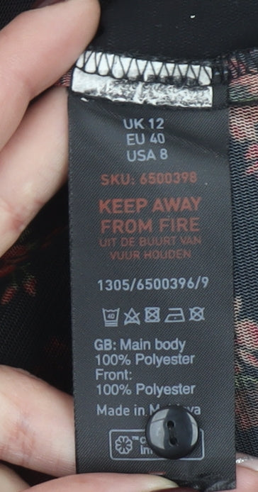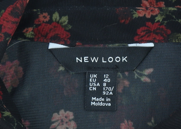 New Look Women's Black Floral Sheer Long Sleeve Button Blouse UK 12
