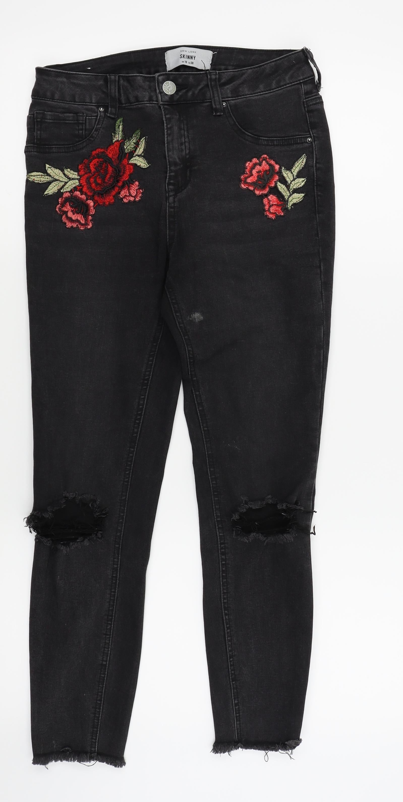 New Look Womens Black Floral Skinny Jeans Size 10 L24 in