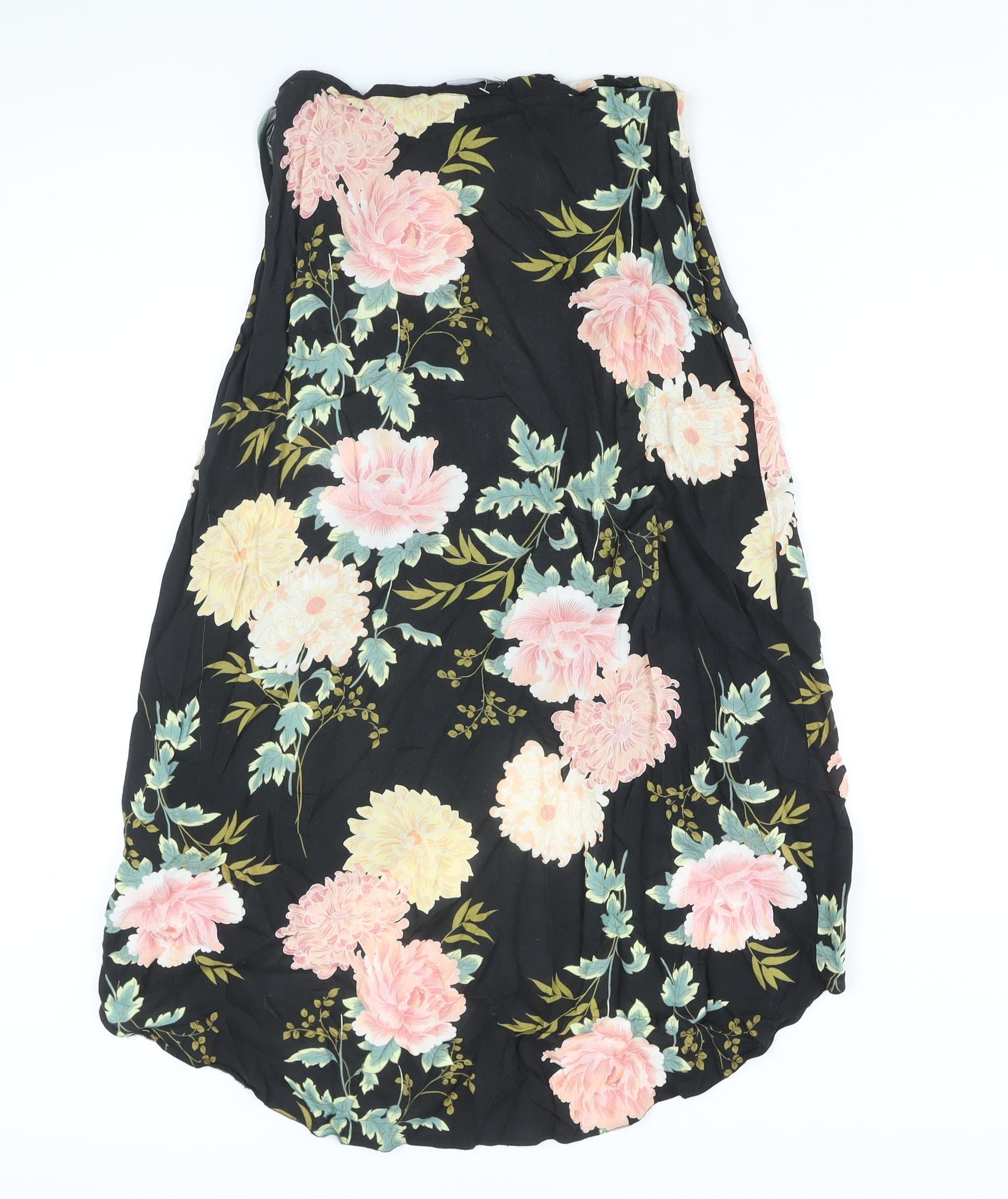 New Look Womens Black Floral Viscose Wrap Skirt Size 8 Tie - Hi-Low