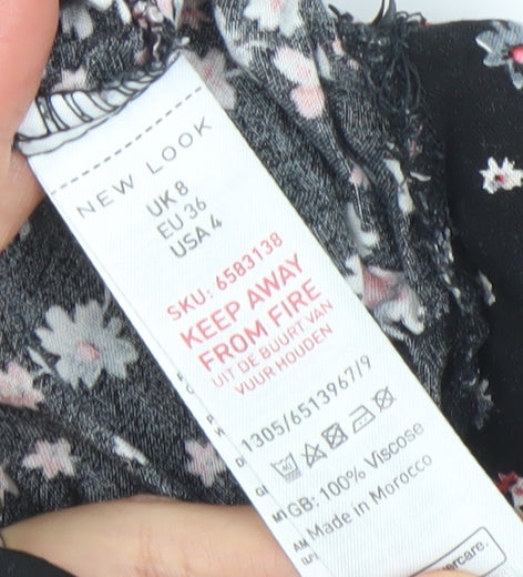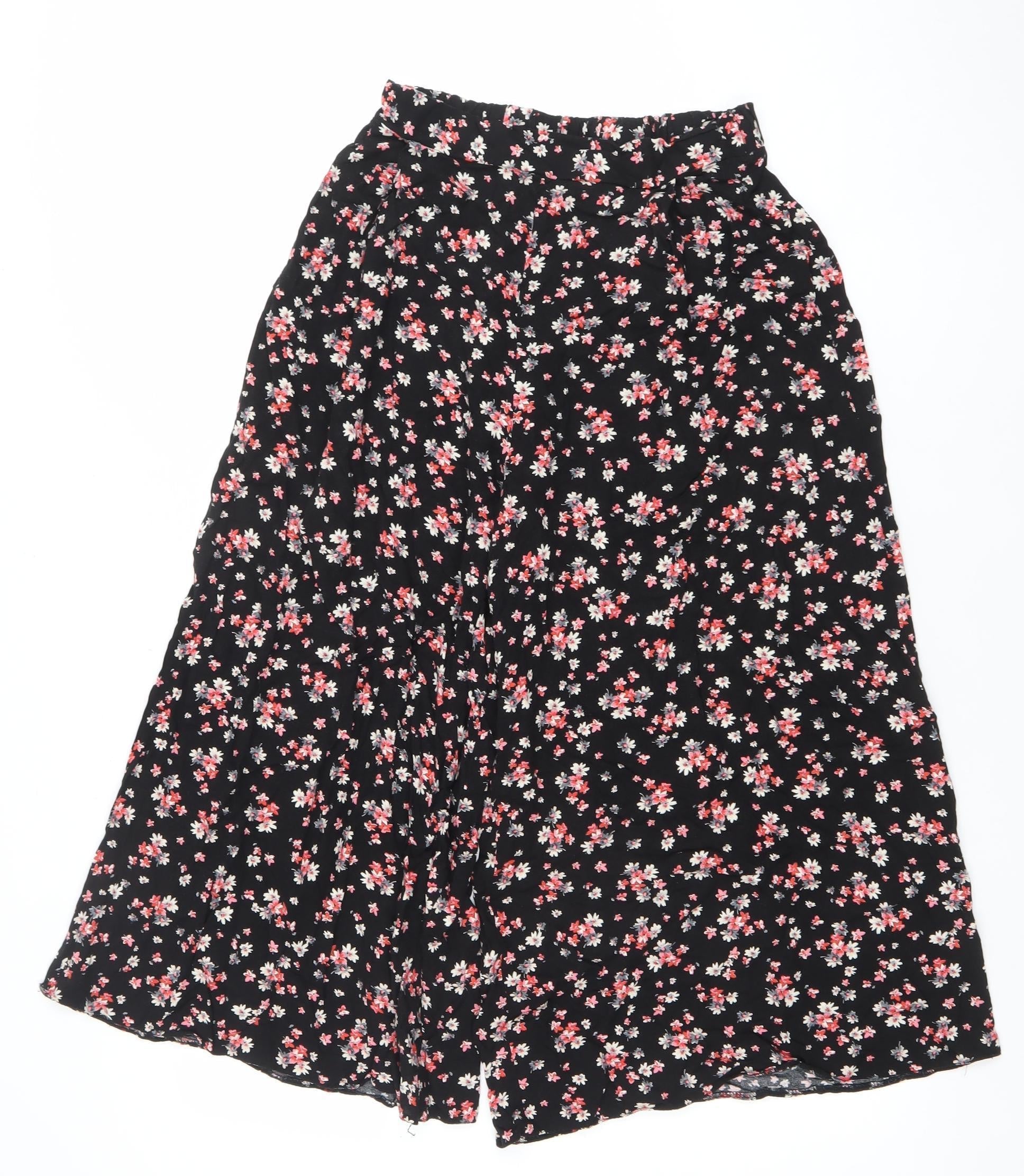 New Look Womens Black Floral Wide-Leg Culotte Trousers Size 8