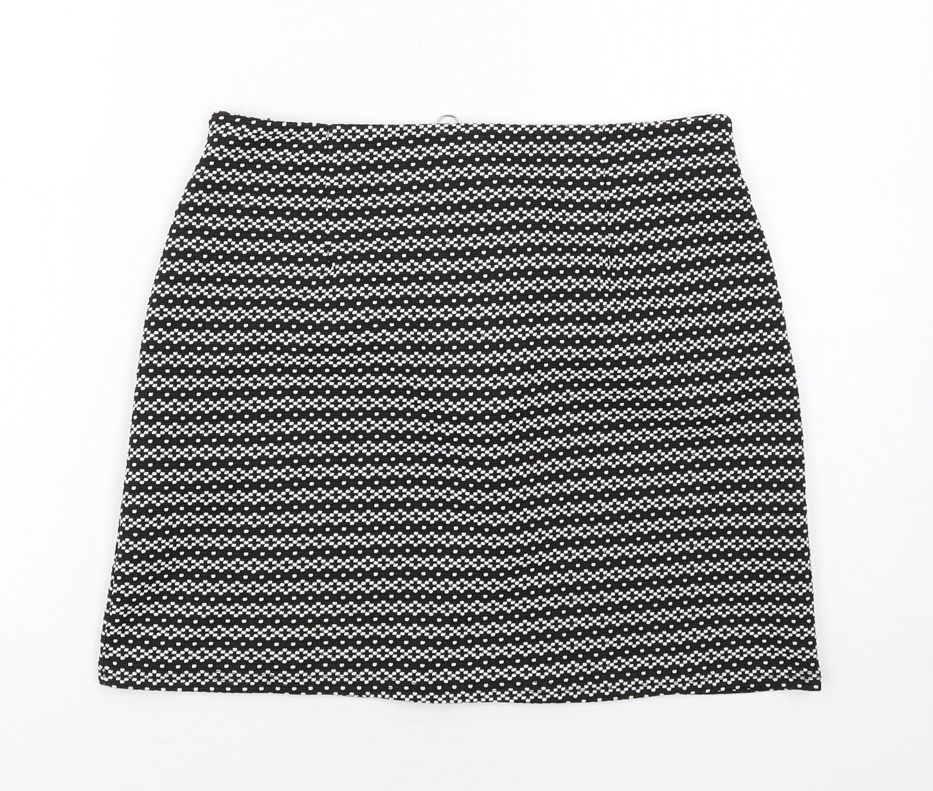 New Look Womens Black Geometric Polyester A-Line Skirt Size 12 Zip