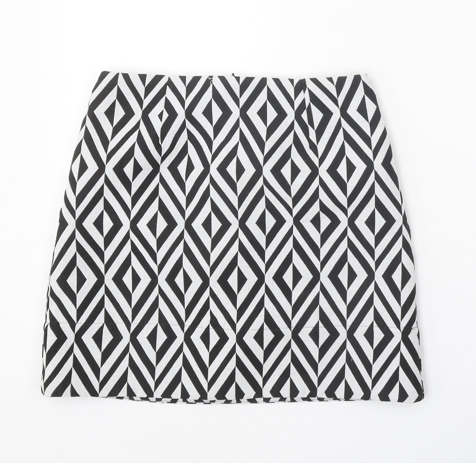 New Look Womens Black Geometric Polyester A-Line Skirt Size 6 Zip