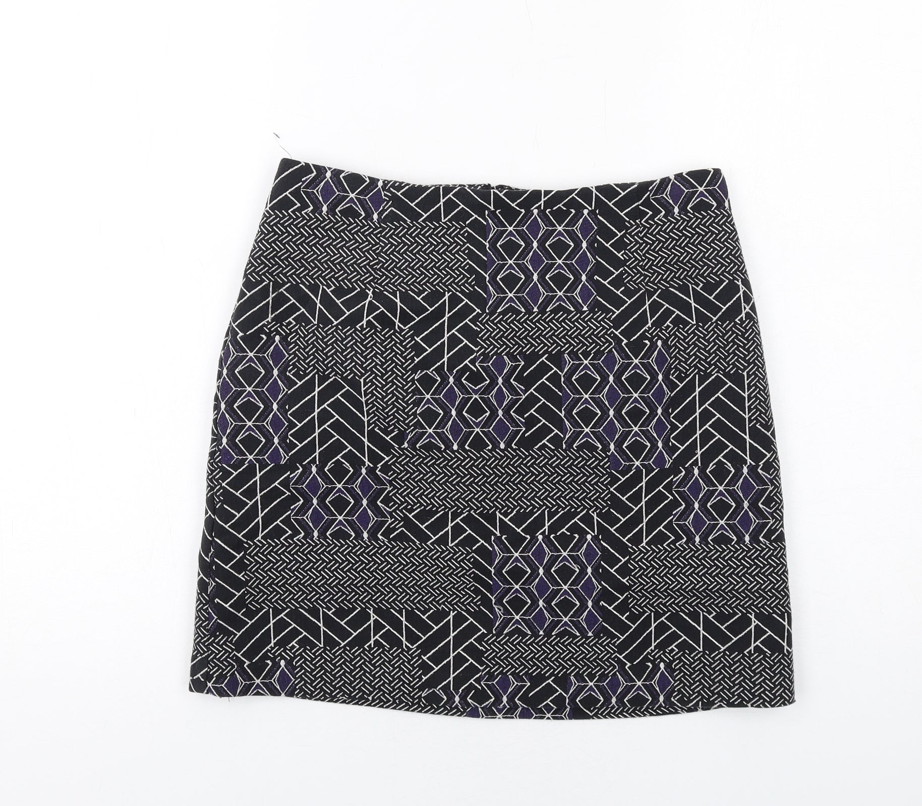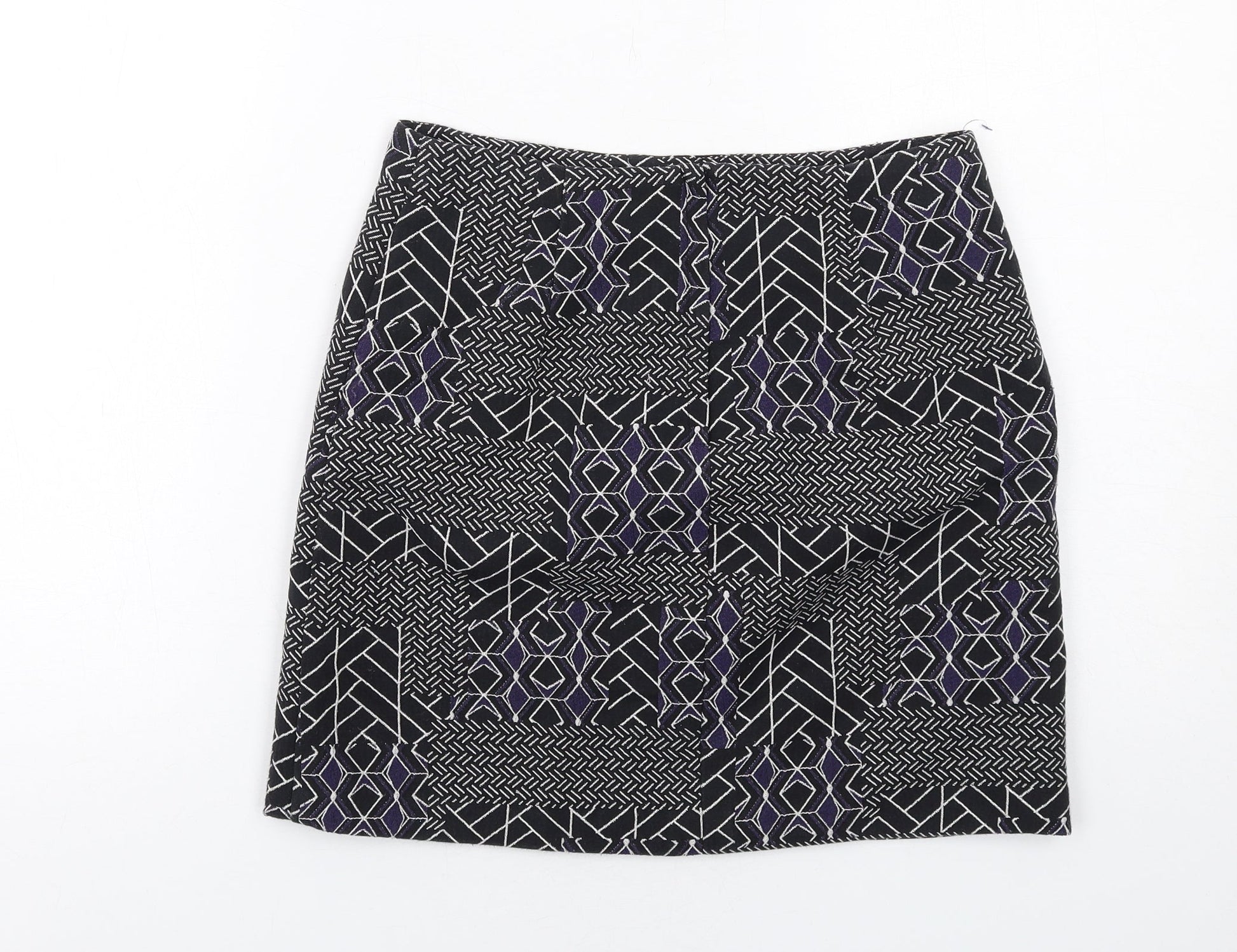 New Look Womens Black Geometric Polyester A-Line Skirt Size 8 Zip