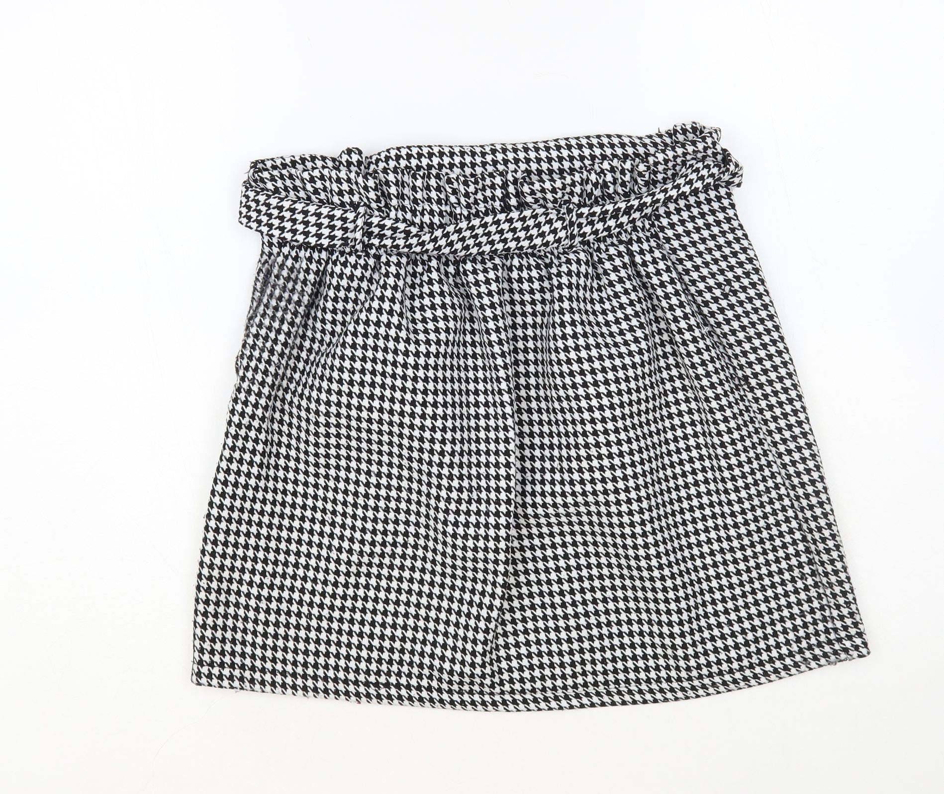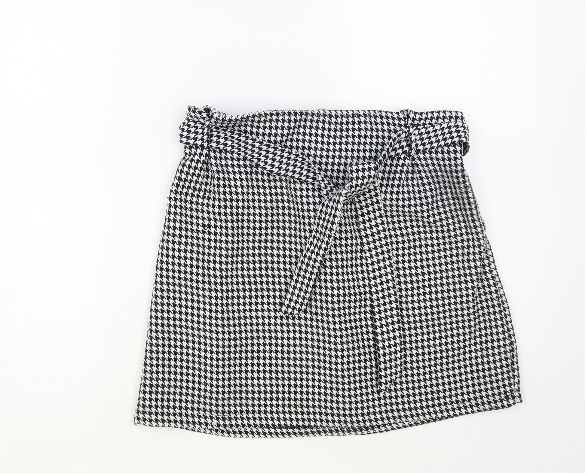 New Look Womens Black Geometric Polyester Mini Skirt Size 10 Tie