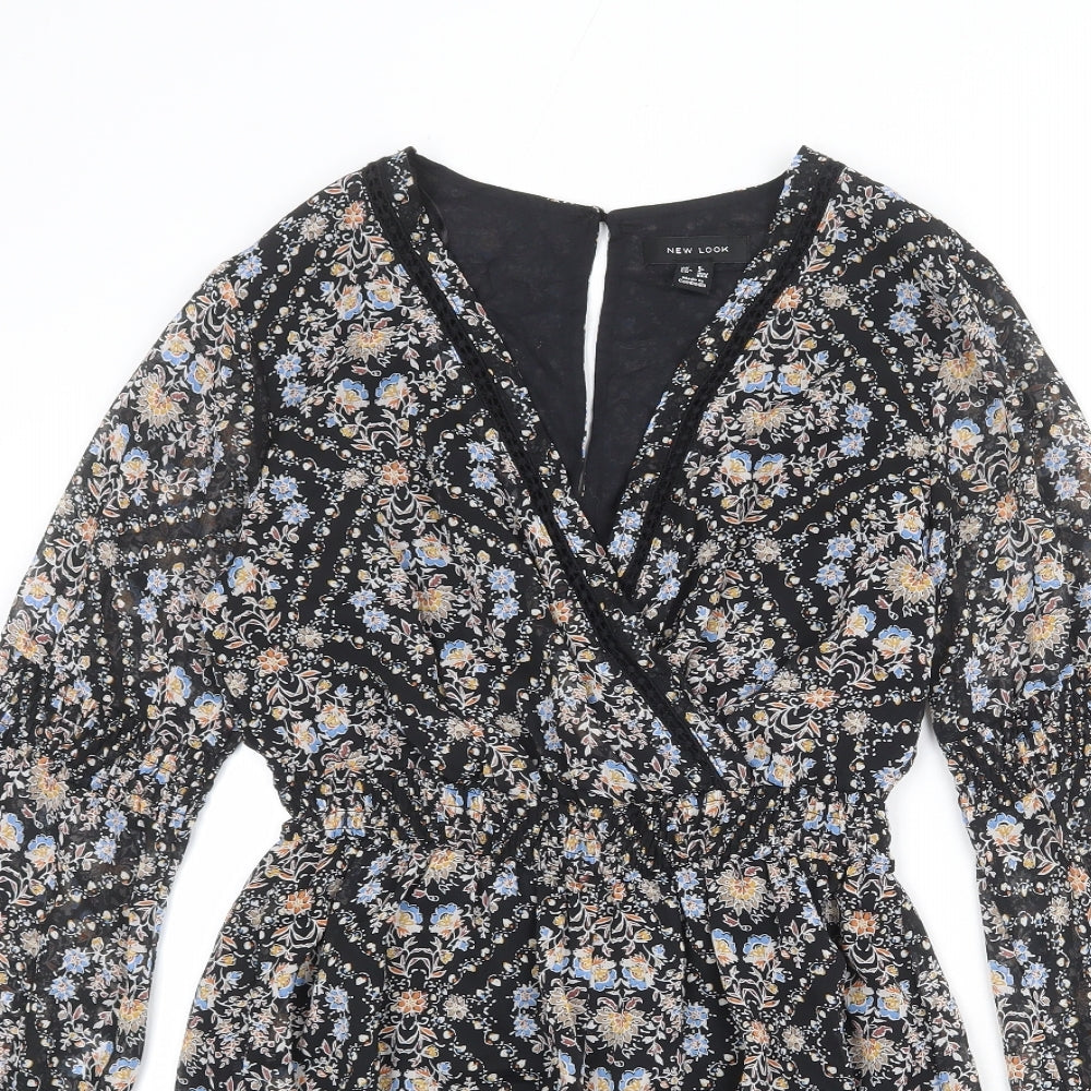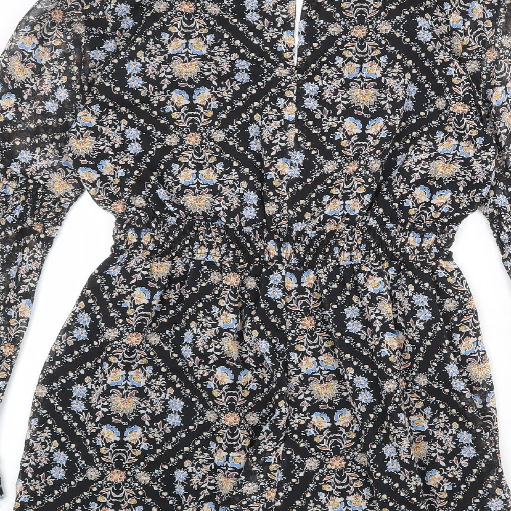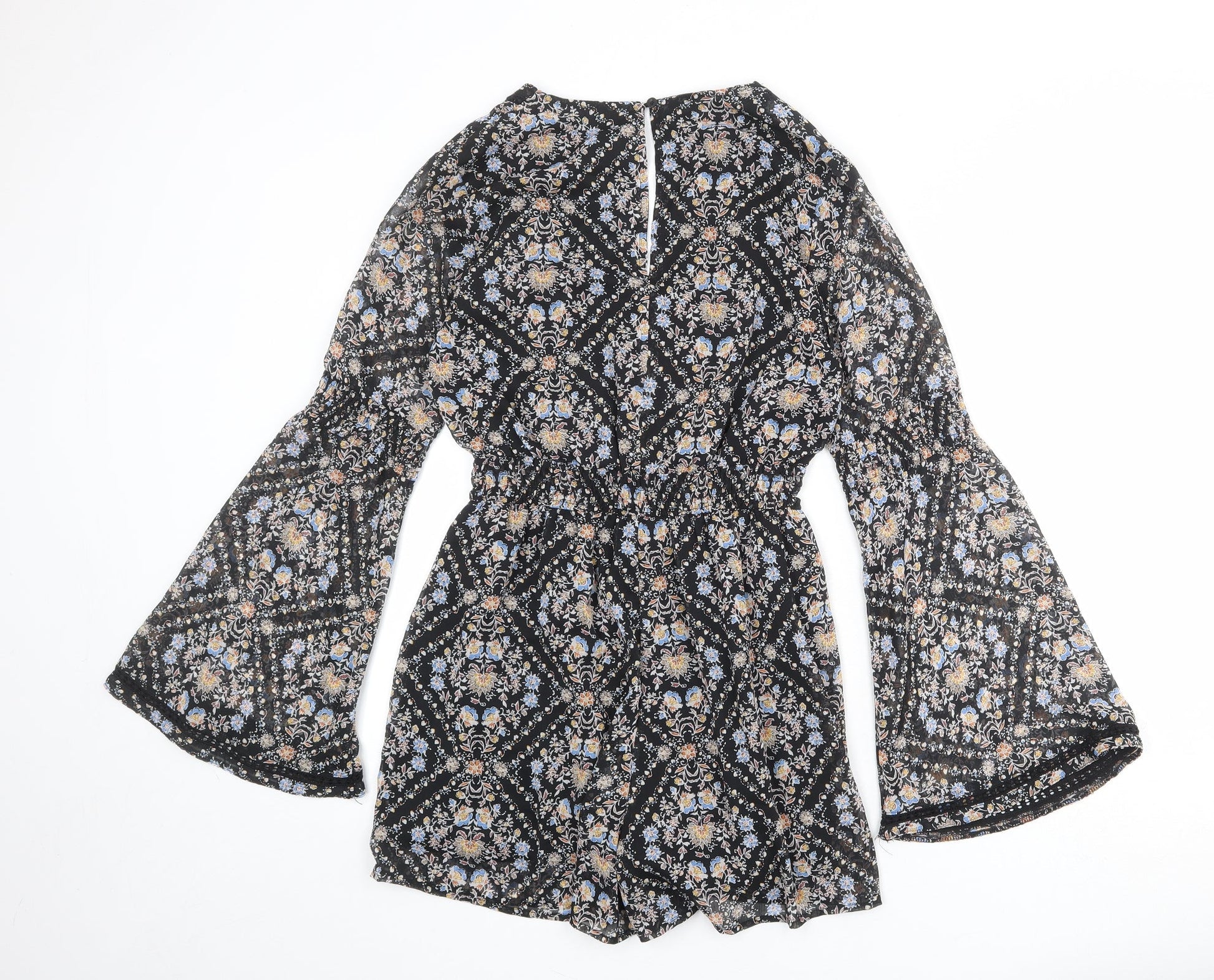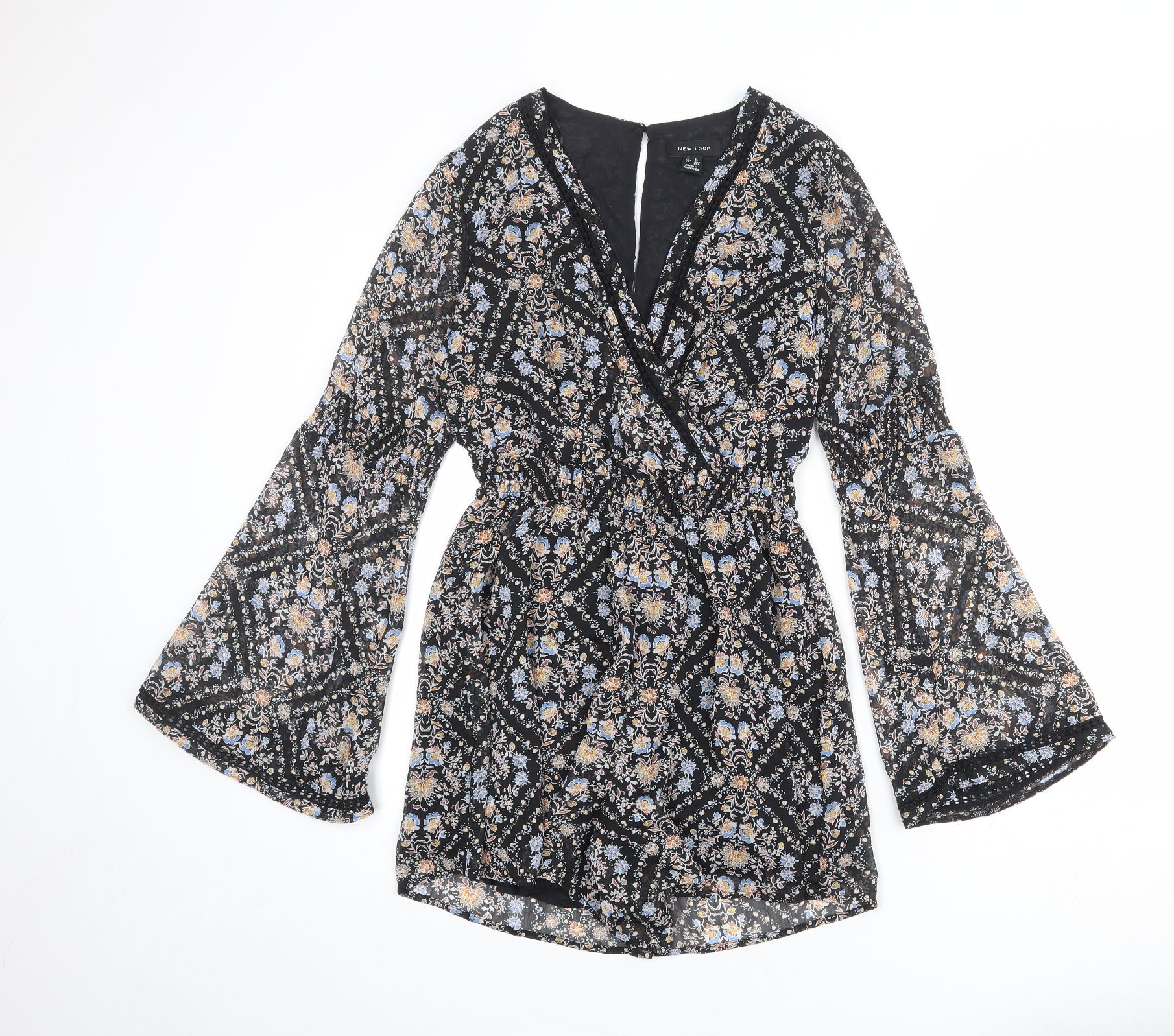 New Look Womens Black Geometric Polyester Playsuit One-Piece Size 8 L4 in Button
