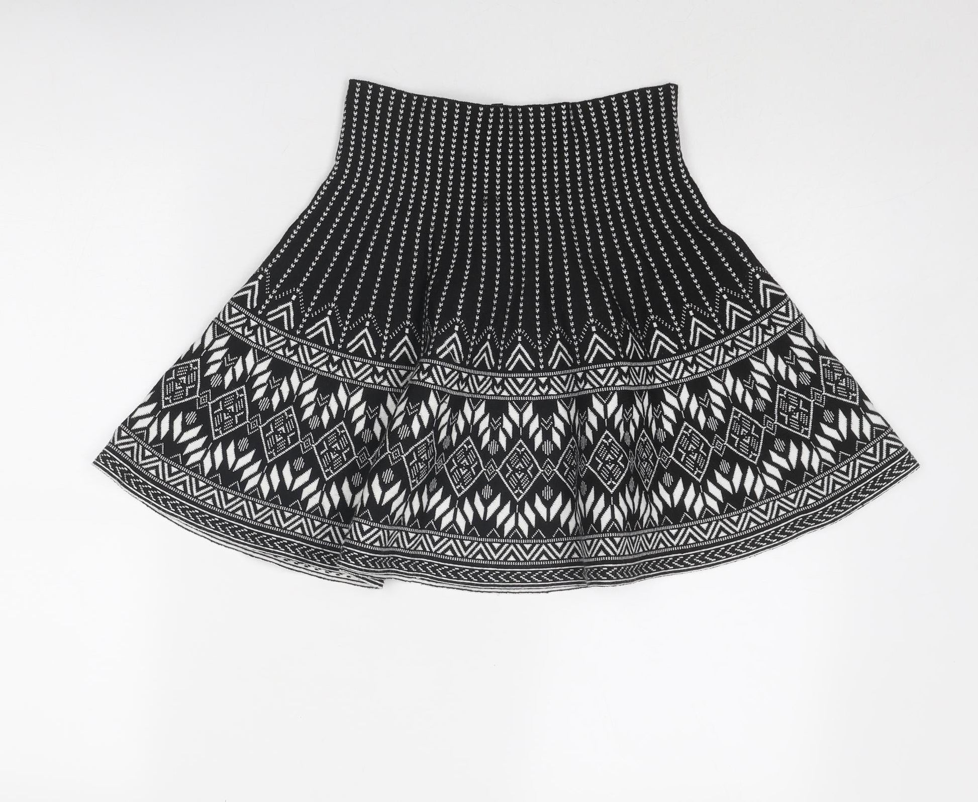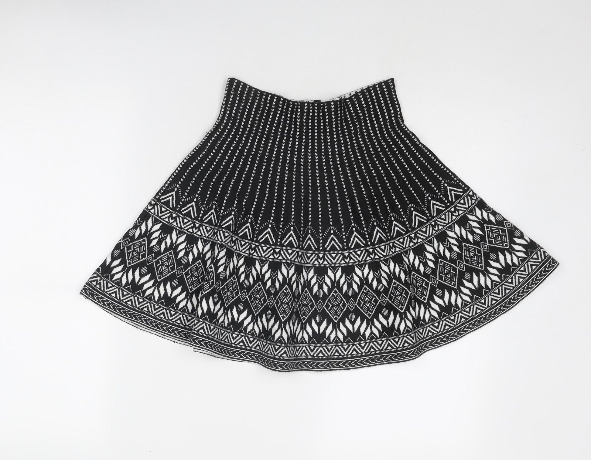 New Look Womens Black Geometric Polyester Swing Skirt Size 8