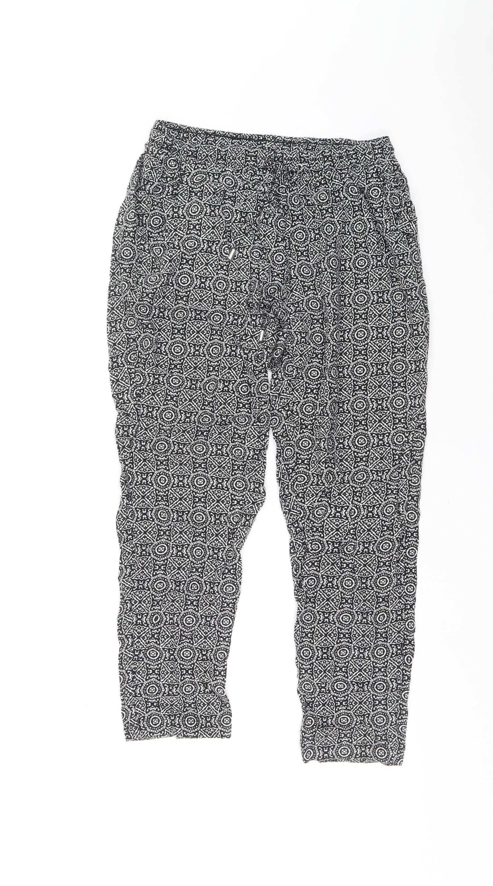 New Look Womens Black Geometric Viscose Bloomer Trousers Size 10 L25.5 in Regular Drawstring
