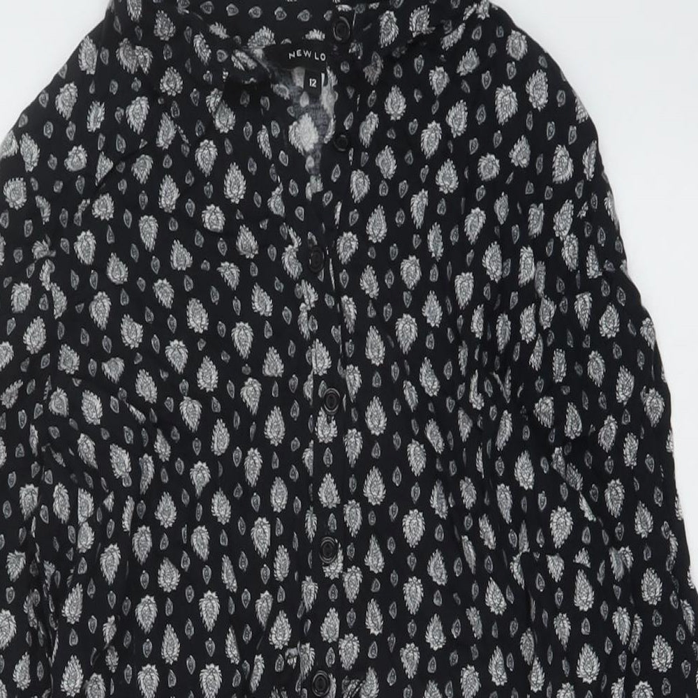 New Look Womens Black Geometric Viscose Playsuit One-Piece Size 12 Button