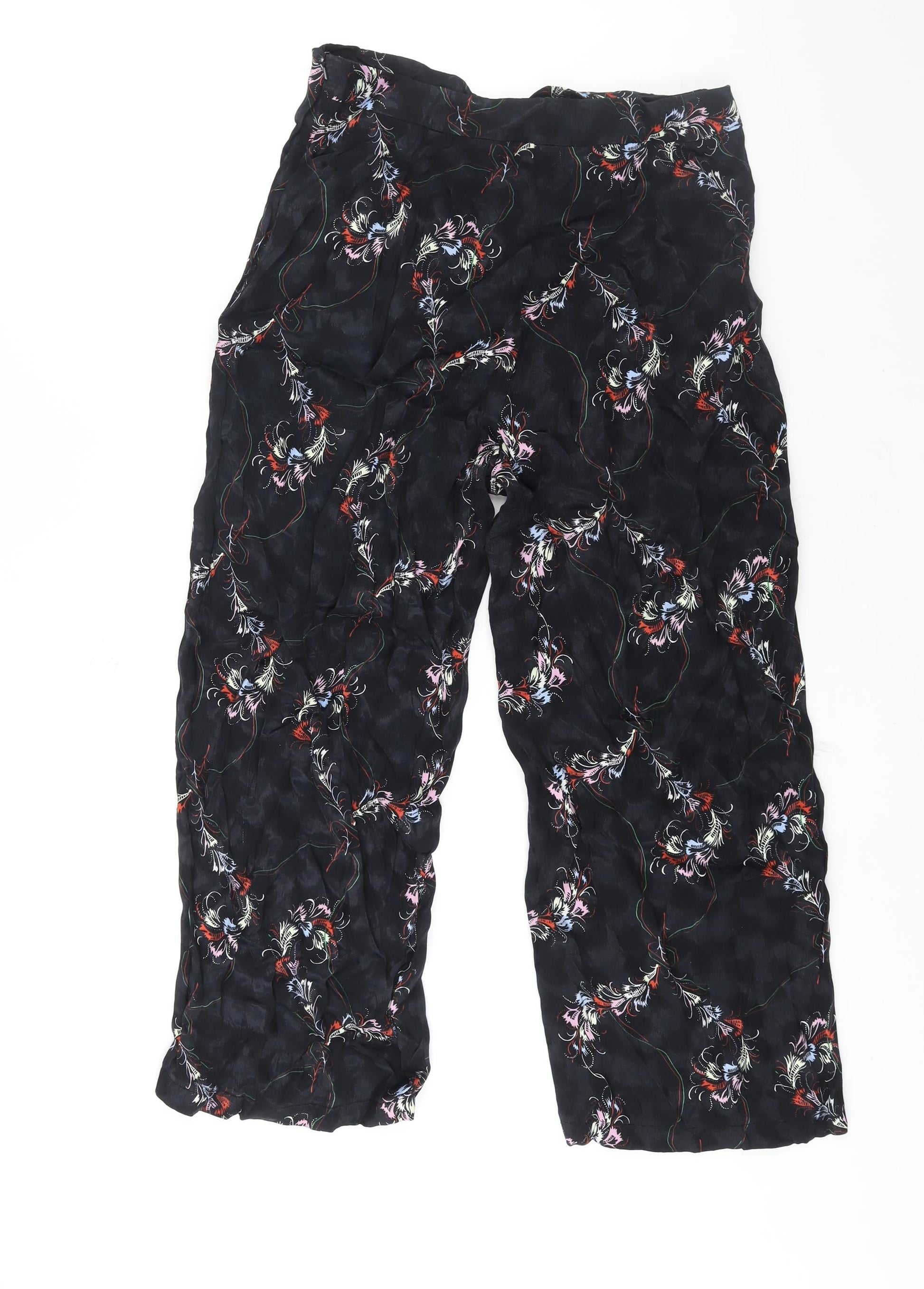 New Look Womens Black Geometric Viscose Trousers Size 14 L24 in Regular Zip