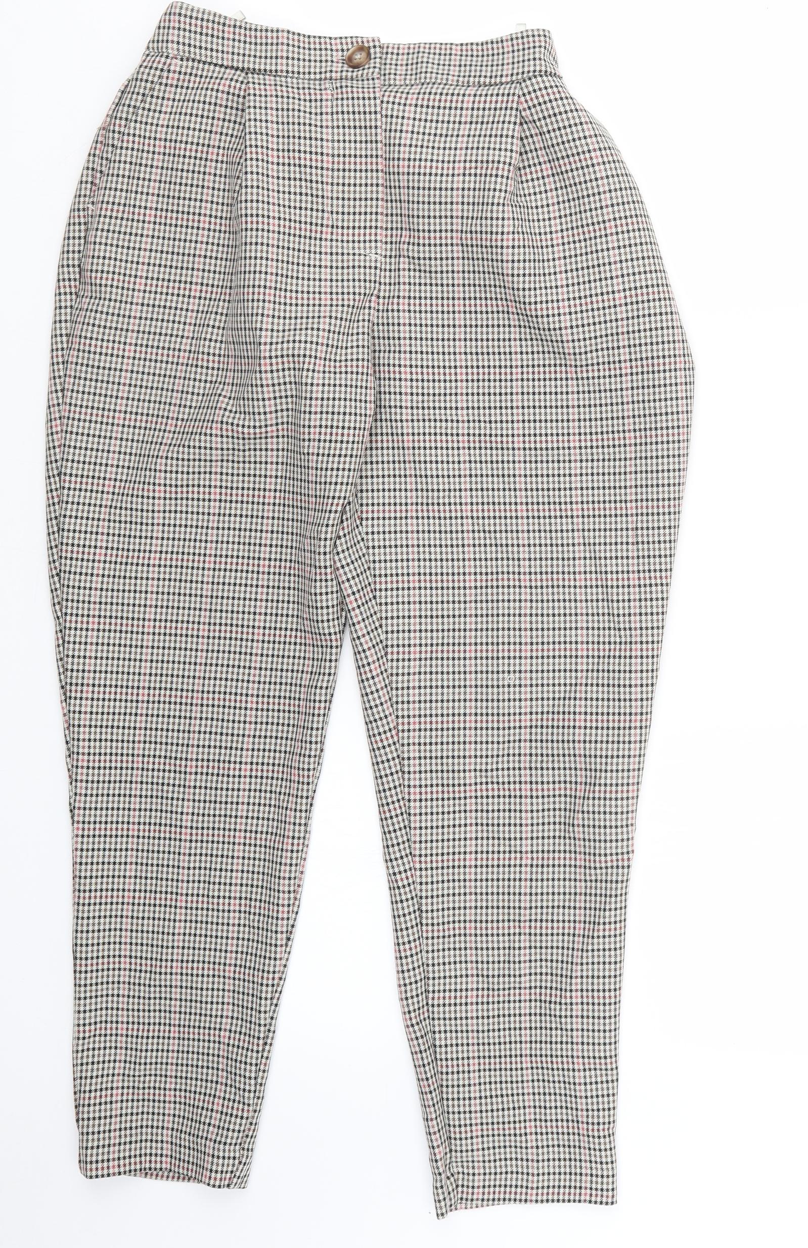 New Look Womens Black Houndstooth Trousers Size 10 L23.5 in