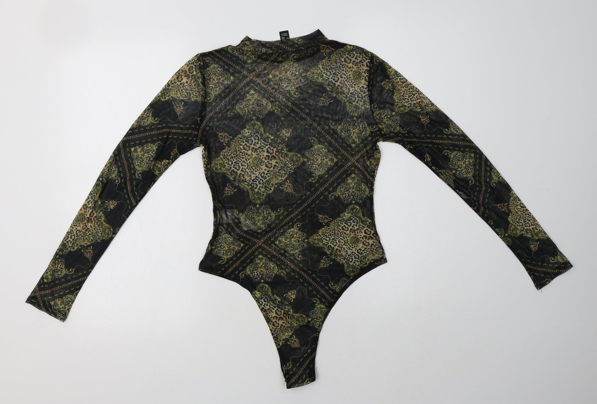 New Look Womens Black Paisley Polyester Bodysuit One-Piece Size 10
