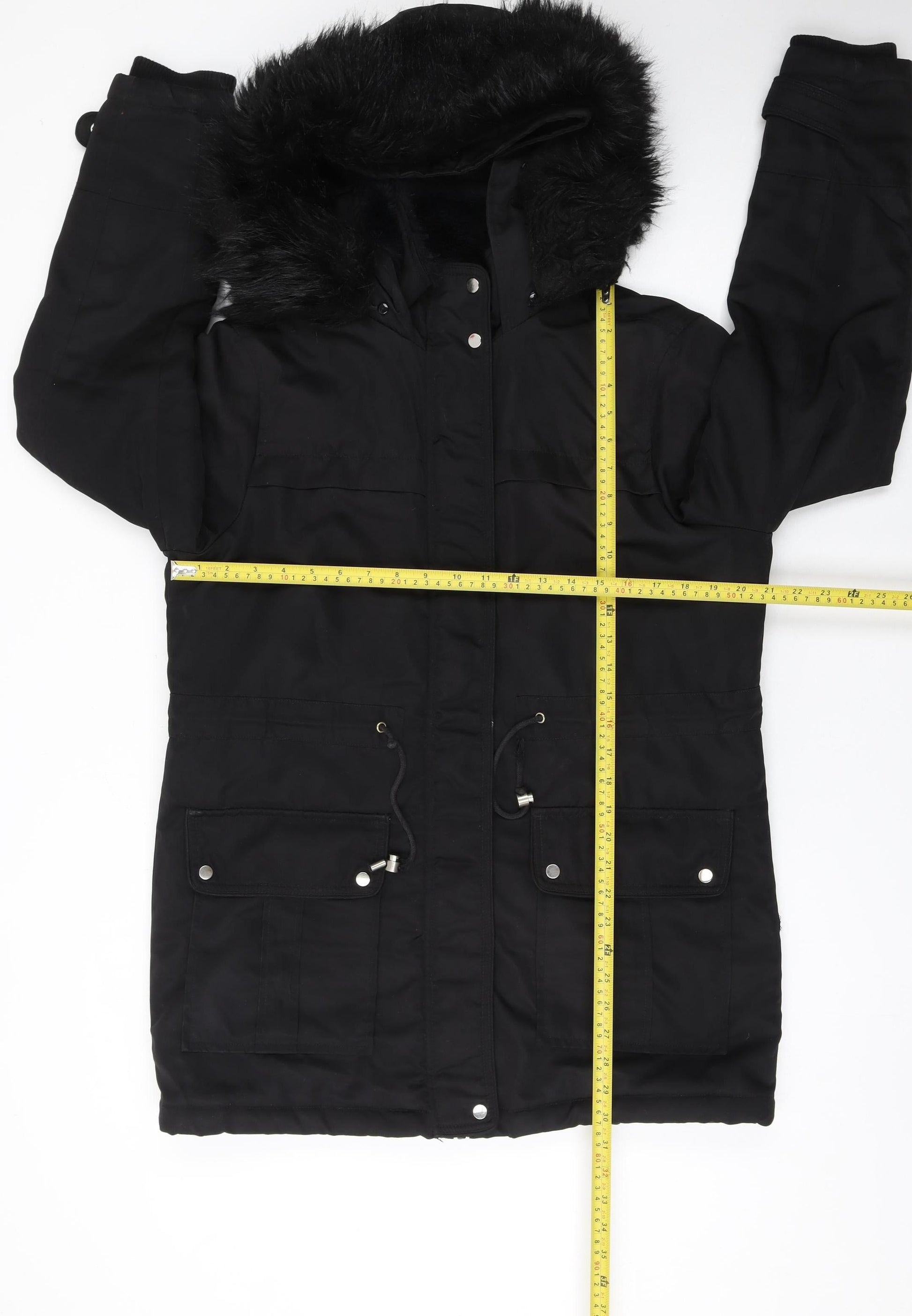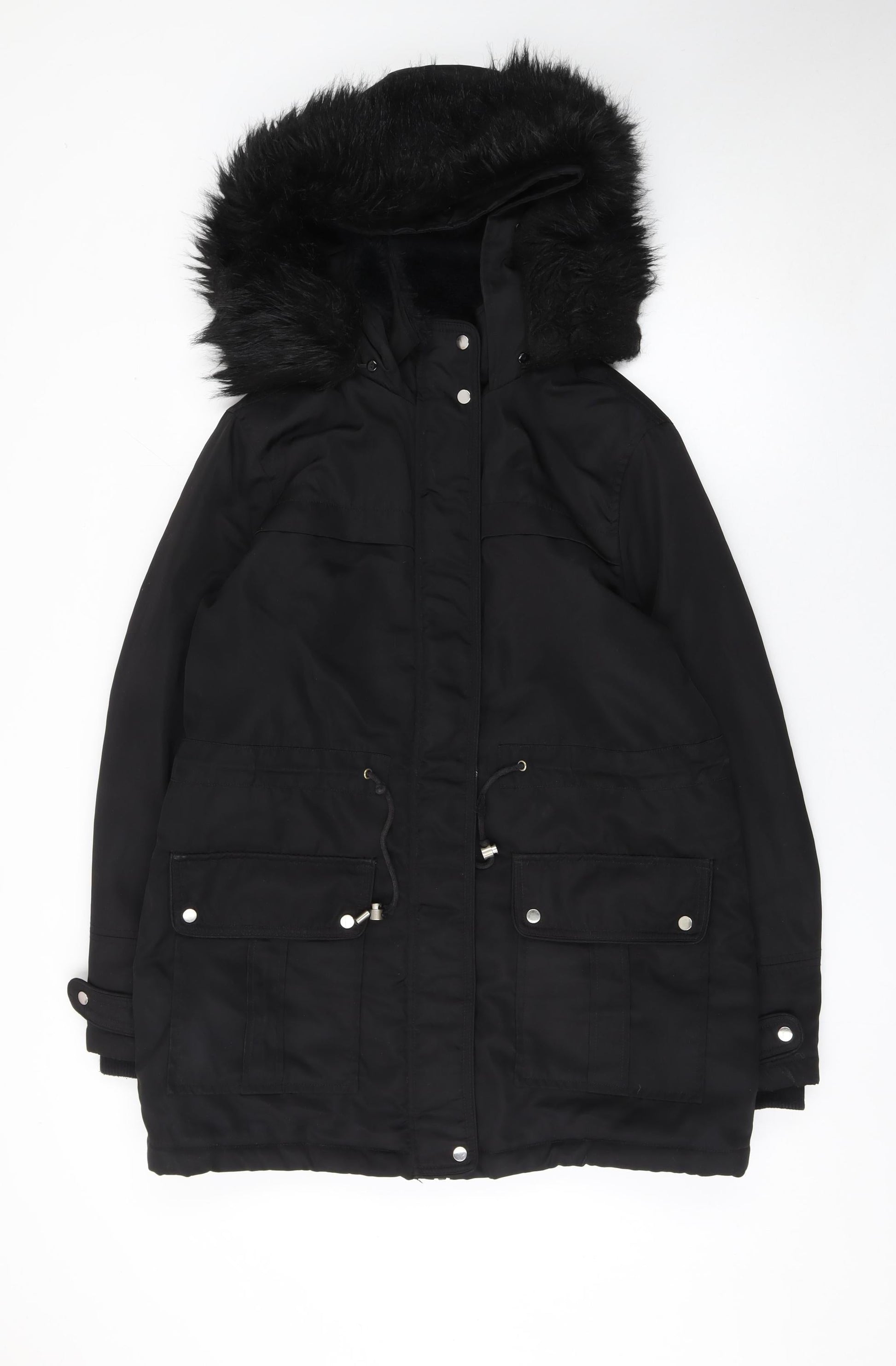 New Look Women's Black Parka Coat Size 12 Hooded Faux Fur Winter Jacket