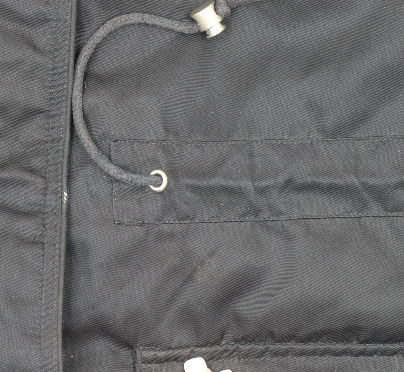 - Features: Hooded Lined Drawstring Pockets Full Zip Snap Faux Fur Trim