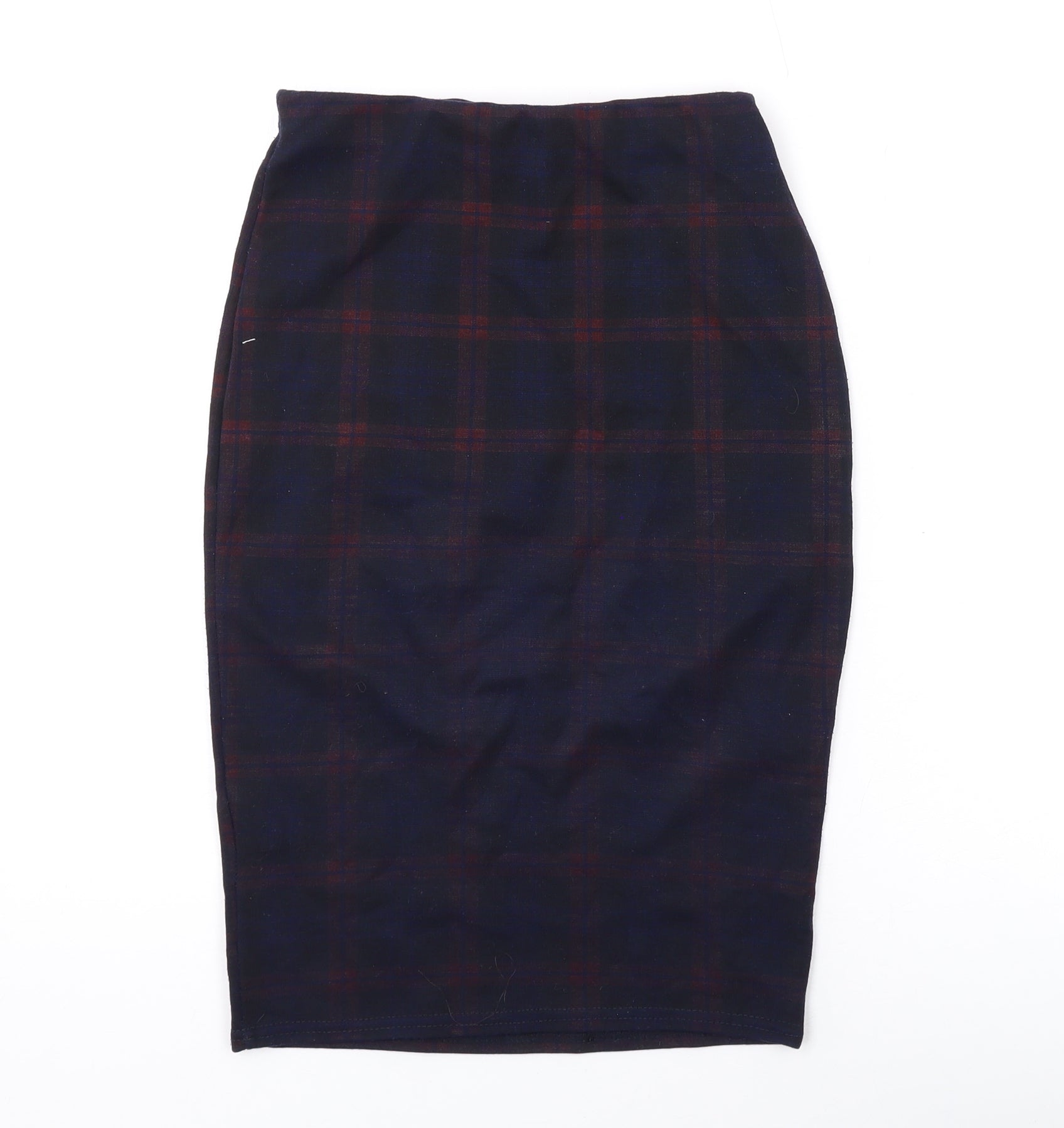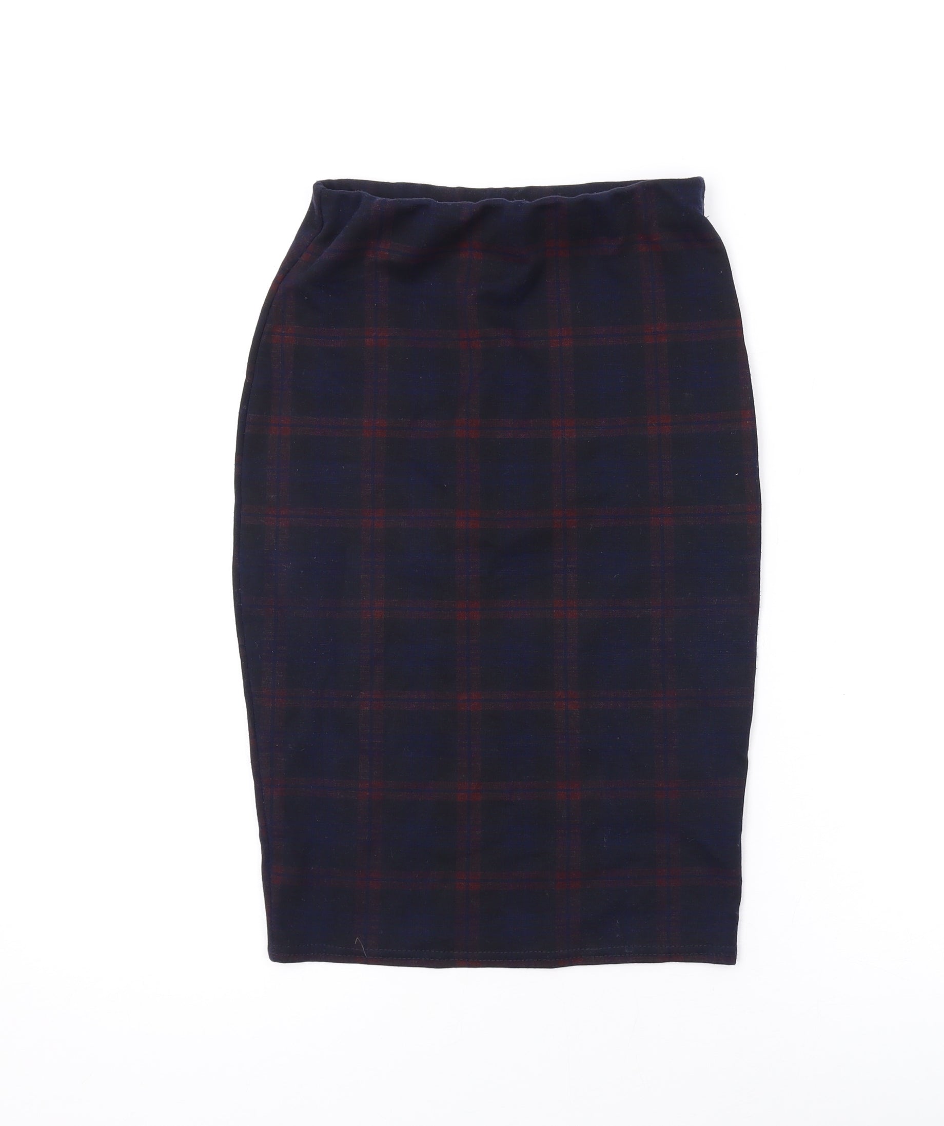 New Look Womens Black Plaid Polyester Bandage Skirt Size 6